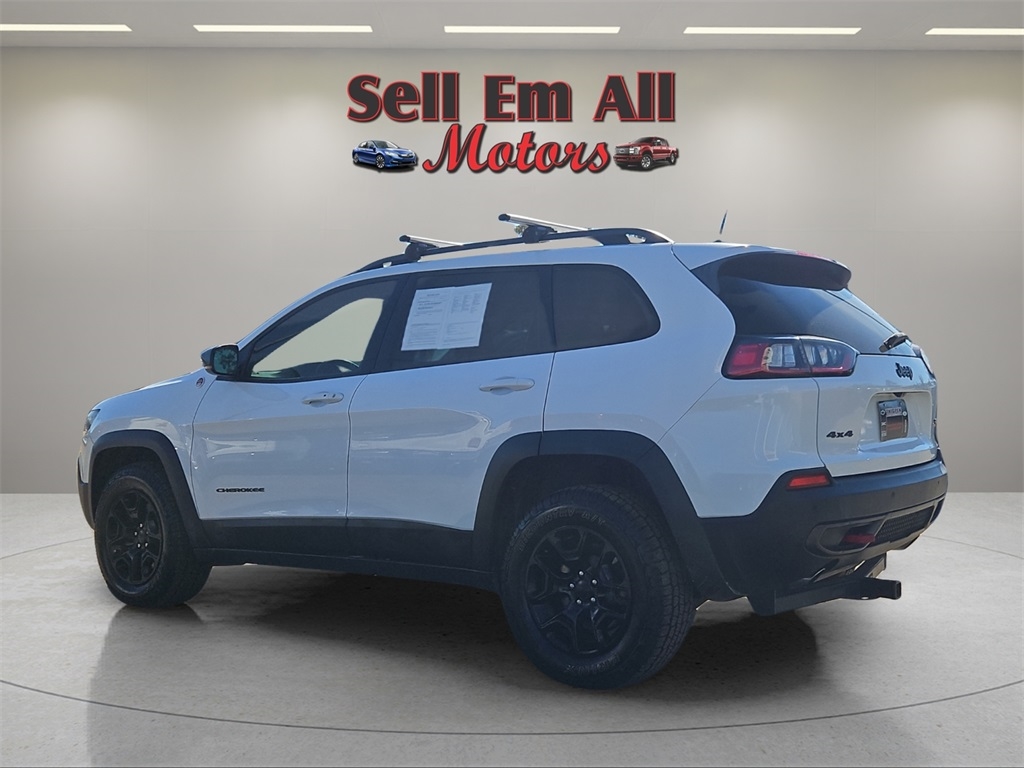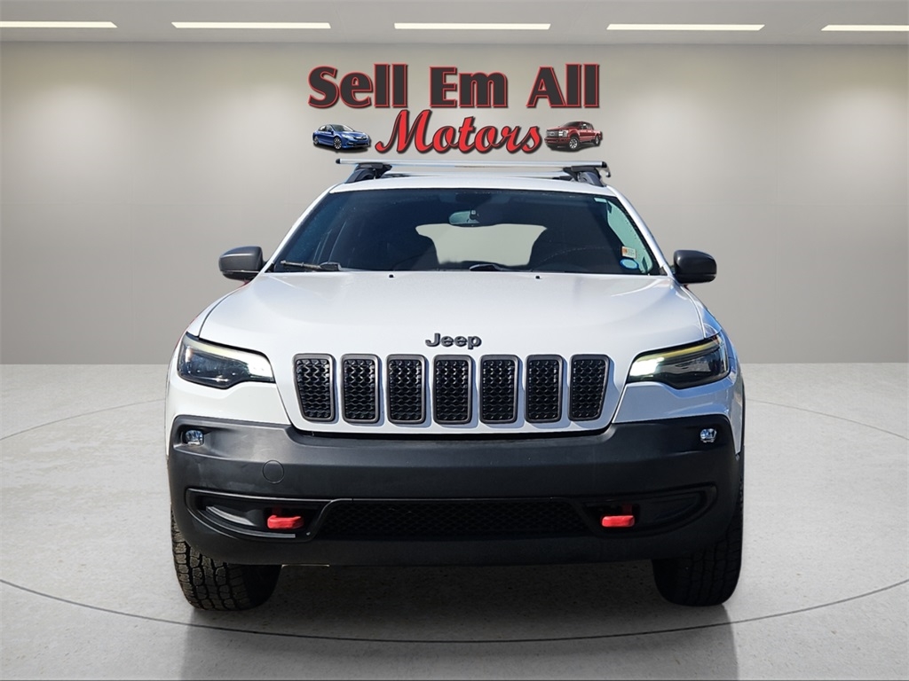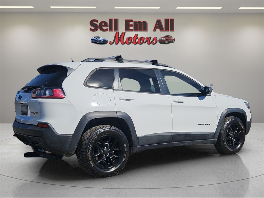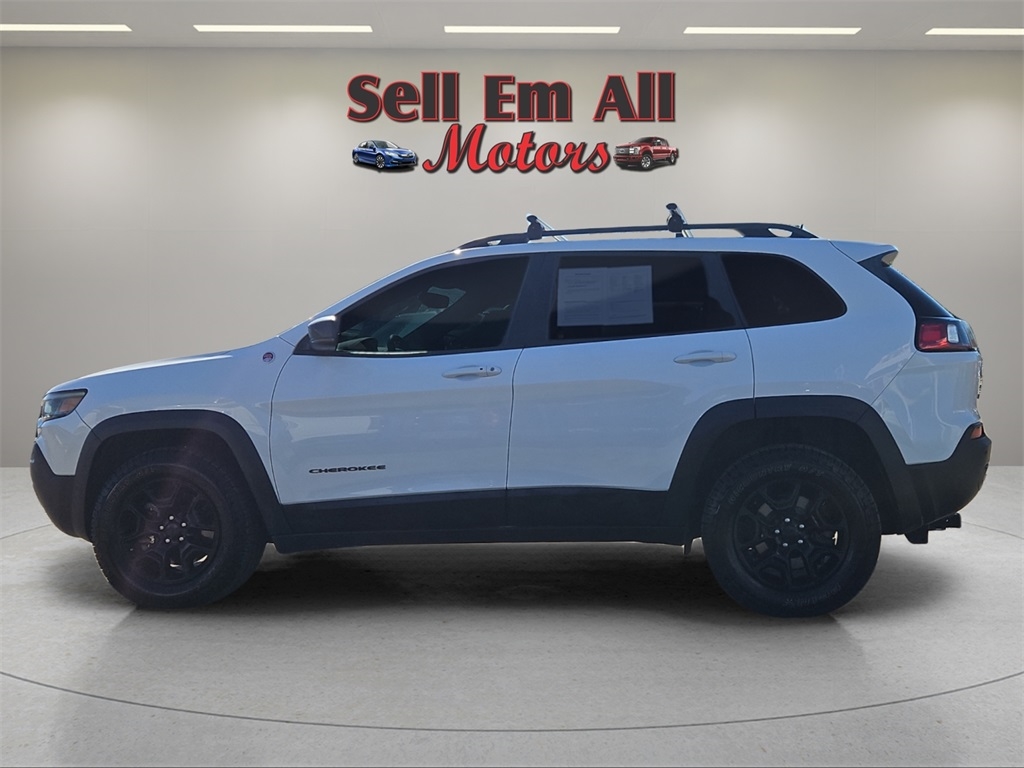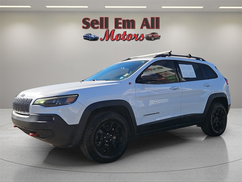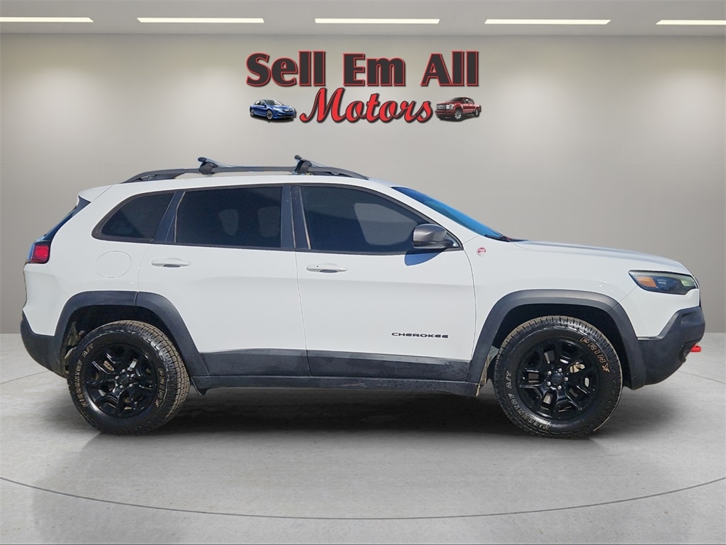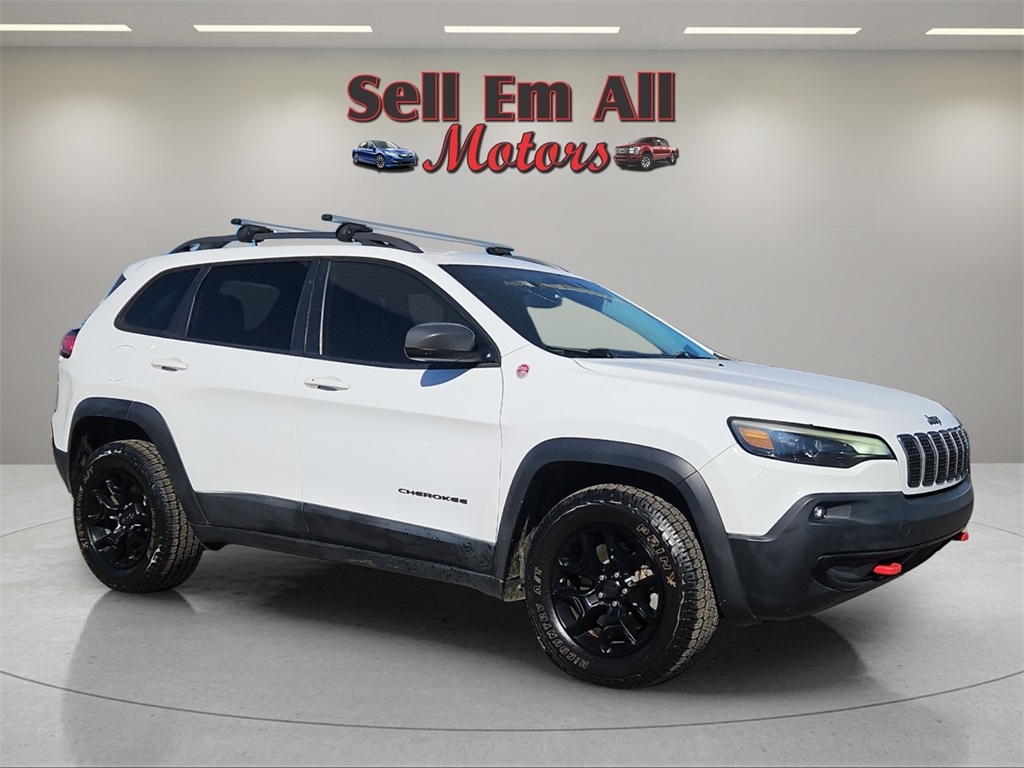 Sell Em All Motors in Vidlia is very proud to offer this wonderful-looking 2019 Jeep Cherokee in Bright White Clearcoat This vehicle has passed our comprehensive inspection and comes with the following Quick Order Package 27E Trailhawk, 3.517 Axle Ratio, 4-Wheel Disc Brakes, 6 Speakers, 8.4" Touchscreen Display, ABS brakes, Air Conditioning, Alloy wheels, AM/FM radio: SiriusXM, Anti-whiplash front head restraints, Apple CarPlay, Apple CarPlay/Android Auto, Automatic temperature control, AutoStick Automatic Transmission, Auxiliary Transmission Oil Cooler, Brake assist, Cloth/Premium Vinyl Bucket Seats, Compass, Delay-off headlights, Driver door bin, Driver vanity mirror, Dual Bright Exhaust Tips, Dual front impact airbags, Dual front side impact airbags, Electronic Stability Control, Engine Oil Cooler, Exterior Mirrors Courtesy Lamps, Exterior Mirrors w/Supplemental Signals, Four wheel independent suspension, Front anti-roll bar, Front Bucket Seats, Front Center Armrest, Front dual zone A/C, Front fog lights, Front reading lights, Fully automatic headlights, Google Android Auto, GPS Antenna Input, Heated door mirrors, Hill Descent Control, Illuminated entry, Illuminated Front Cupholders (DISC), Integrated Voice Command w/Bluetooth, Knee airbag, Leather Shift Knob, Low tire pressure warning, Manufacturer's Statement of Origin (DISC), Occupant sensing airbag, Off Road Suspension, Outside temperature display, Overhead airbag, Overhead console, Panic alarm, ParkView Rear Back-Up Camera, Passenger door bin, Passenger vanity mirror, Power door mirrors, Power driver seat, Power steering, Power windows, Radio data system, Radio: Uconnect 4 w/8.4" Display, Rear anti-roll bar, Rear reading lights, Rear seat center armrest, Rear side impact airbag, Rear window defroster, Rear window wiper, Remote keyless entry, Roof rack: rails only, SiriusXM Satellite Radio, Speed control, Speed-sensing steering, Split folding rear seat, Spoiler, Steering wheel mounted audio controls, Stop-Start Multiple VSM System, Tachometer, Telescoping steering wheel, Tilt steering wheel, Traction control, Trip computer, Turn signal indicator mirrors, USB Host Flip, Variably intermittent wipers, Voltmeter, Wheels: 17" x 7.5" Black Painted Aluminum, and Wheels: 17" x 7.5" Painted/Polished Aluminum;