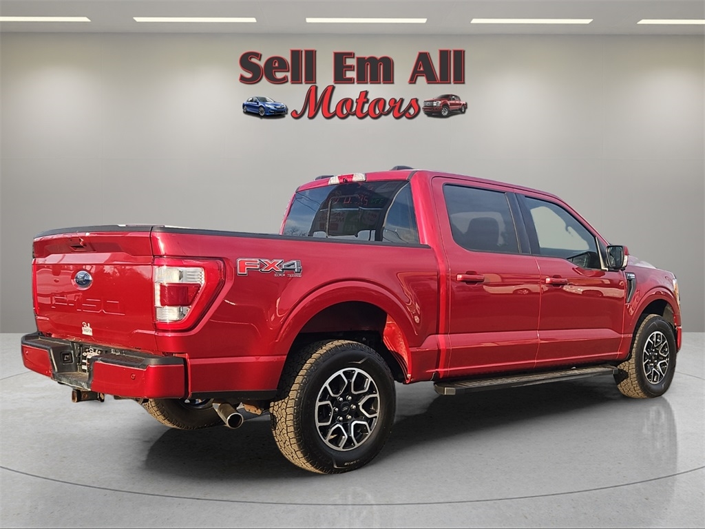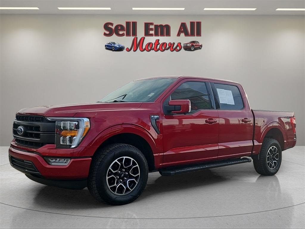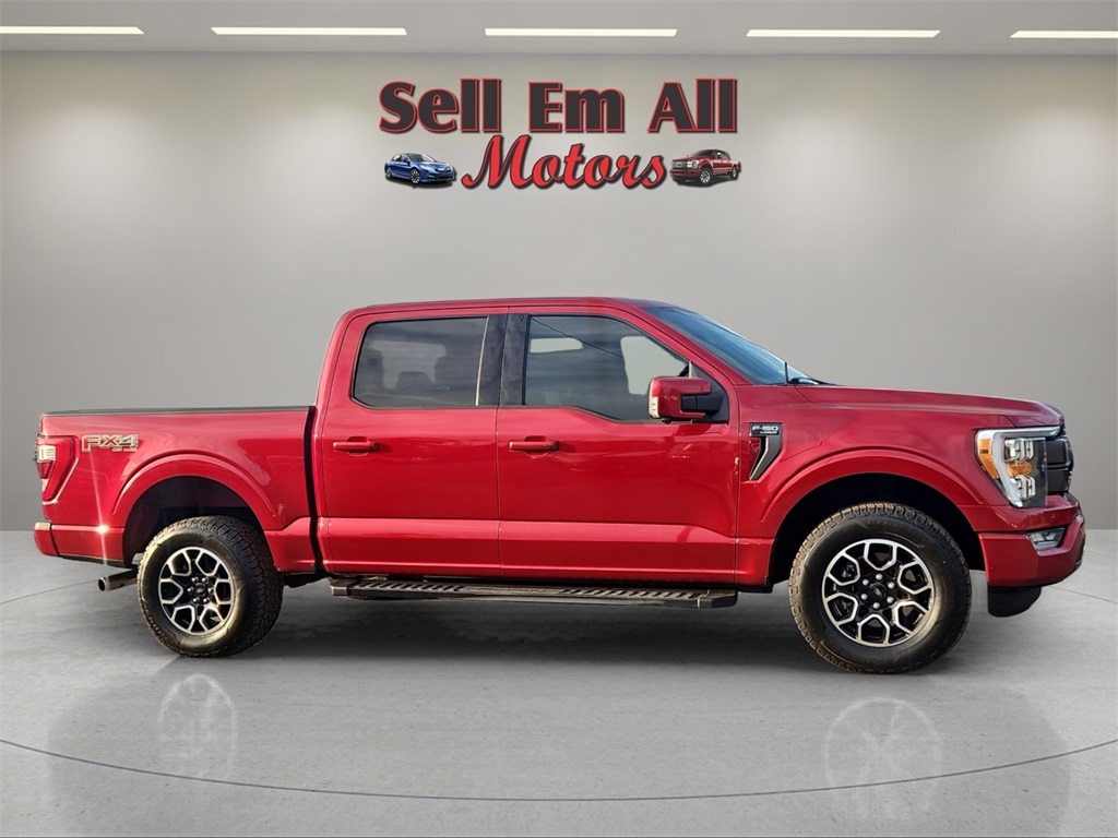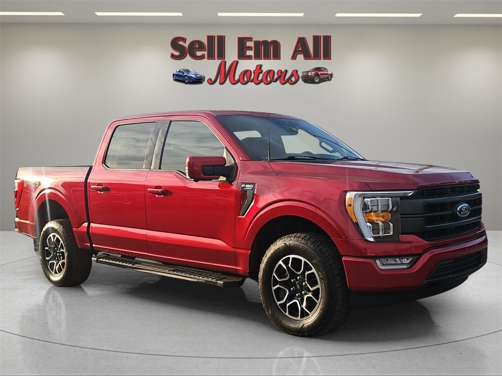 Sell Em All Motors in Vidlia is pleased to offer this stout 2022 Ford F-150 in Rapid Red Metallic Tinted Clearcoat This vehicle has passed our comprehensive inspection and comes with the following Bed Utility Package (BoxLink, LED Box Lighting, Power Tailgate, and Tailgate Step w/Tailgate Work Surface), Equipment Group 501A Mid (Radio: B&O Sound System by Bang & Olufsen), FX4 Off-Road Package (Tray Style Floor Liner (47W)), Lariat Sport Appearance Package (Accent-Color Angular Step Bars, Body-Color Front & Rear Bumpers, Box Side Decals, Chrome Single-Tip Exhaust, Dark 2-Bar & 1 Minor Bar Style Grille, and Wheels: 18" 6-Spoke Machined Aluminum), Tow Technology Package (360 Degree Camera, Integrated Trailer Brake Controller, and Pro Trailer Backup Assist), 4WD, 18" Machined-Aluminum Wheels, 4-Wheel Disc Brakes, 7 Speakers, ABS brakes, Adjustable pedals, Air Conditioning, Alloy wheels, AM/FM radio: SiriusXM with 360L, Auto High-beam Headlights, Auto Start-Stop Removal, Auto-dimming door mirrors, Auto-dimming Rear-View mirror, Automatic temperature control, Brake assist, Bumpers: chrome, Class IV Trailer Hitch Receiver, Compass, Delay-off headlights, Driver door bin, Driver vanity mirror, Dual front impact airbags, Dual front side impact airbags, Electronic Stability Control, Emergency communication system: SYNC 4 911 Assist, Extended Range 36 Gallon Fuel Tank, Exterior Parking Camera Rear, Front anti-roll bar, Front Center Armrest w/Storage, Front dual zone A/C, Front fog lights, Front reading lights, Front wheel independent suspension, Fully automatic headlights, Heated door mirrors, Heated front seats, Illuminated entry, Leather-Trimmed 40/20/40 Front Seat, LED Sideview Mirror Spotlights, Low tire pressure warning, Memory seat, Occupant sensing airbag, Outside temperature display, Overhead airbag, Overhead console, Panic alarm, Passenger door bin, Passenger vanity mirror, Pedal memory, Power door mirrors, Power driver seat, Power passenger seat, Power steering, Power windows, Pro Power Onboard - 2KW, Radio data system, Radio: AM/FM SiriusXM w/360L, Rear reading lights, Rear seat center armrest, Rear step bumper, Rear window defroster, Remote keyless entry, Security system, Speed control, Speed-sensing steering, Split folding rear seat, Steering wheel mounted audio controls, SYNC 4 w/Enhanced Voice Recognition, Tachometer, Telescoping steering wheel, Tilt steering wheel, Traction control, Trip computer, Turn signal indicator mirrors, Variably intermittent wipers, Ventilated front seats, and Voltmeter; 4WD.