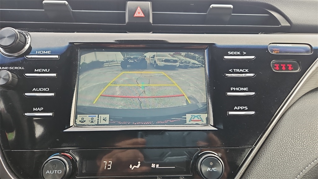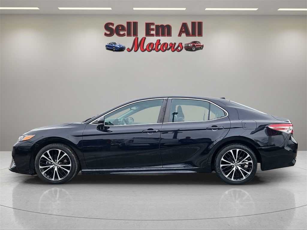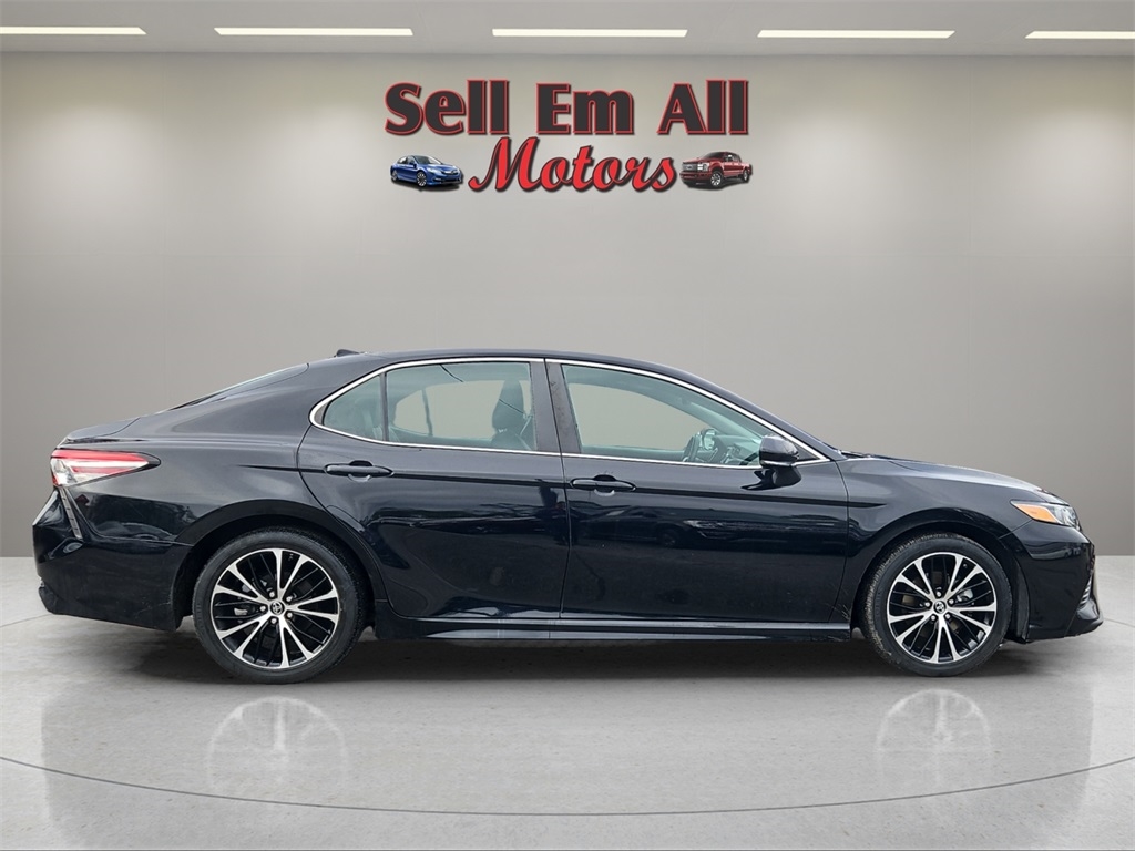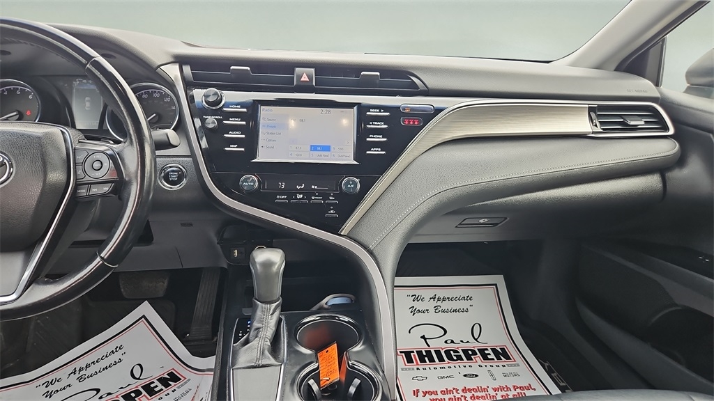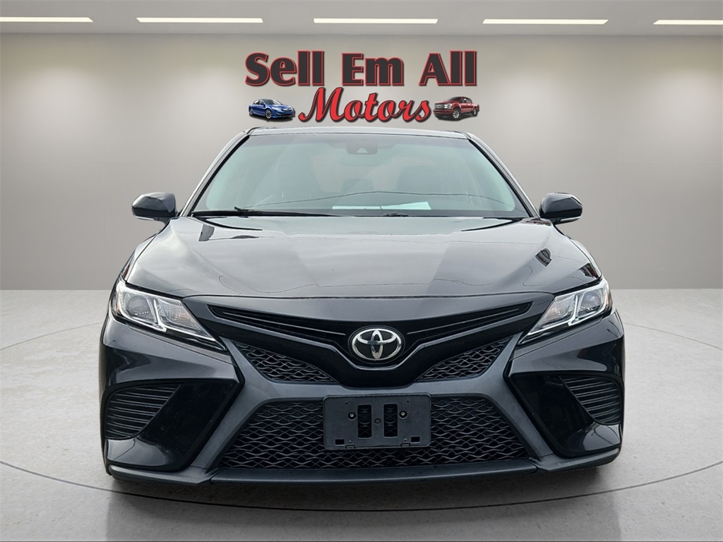 Sell Em All Motors in Vidlia is excited to offer this gorgeous 2019 Toyota Camry in Black This vehicle has passed our comprehensive inspection and comes with the following Black Cloth, ABS brakes, Active Cruise Control, Alloy wheels, Electronic Stability Control, Illuminated entry, Low tire pressure warning, Navigation System, Remote keyless entry, Traction control, 4-Wheel Disc Brakes, 6 Speakers, Air Conditioning, AM/FM radio, Apple CarPlay, Auto High-beam Headlights, Automatic temperature control, Brake assist, Bumpers: body-color, Delay-off headlights, Driver door bin, Driver vanity mirror, Dual front impact airbags, Dual front side impact airbags, Emergency communication system: Safety Connect, Exterior Parking Camera Rear, Fabric Seat Trim w/SofTex, Four wheel independent suspension, Front anti-roll bar, Front Bucket Seats, Front Bucket Sport Seats, Front Center Armrest, Front reading lights, Fully automatic headlights, Knee airbag, Leather Shift Knob, Occupant sensing airbag, Outside temperature display, Overhead airbag, Overhead console, Panic alarm, Passenger door bin, Passenger vanity mirror, Power door mirrors, Power driver seat, Power steering, Power windows, Radio data system, Radio: Entune 3.0 Audio w/App Suite, Rear anti-roll bar, Rear reading lights, Rear seat center armrest, Rear side impact airbag, Rear window defroster, Security system, Speed control, Speed-sensing steering, Split folding rear seat, Spoiler, Sport steering wheel, Steering wheel mounted audio controls, Tachometer, Telescoping steering wheel, Tilt steering wheel, Trip computer, Variably intermittent wipers, and Wheels: 8.0J x 18" Black Machined-Finish Alloy; Black Cloth, ABS brakes, Active Cruise Control, Alloy wheels, Electronic Stability Control, Illuminated entry, Low tire pressure warning, Navigation System, Remote keyless entry, Traction control.