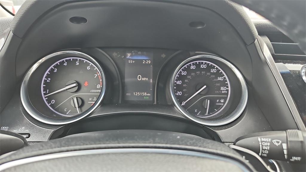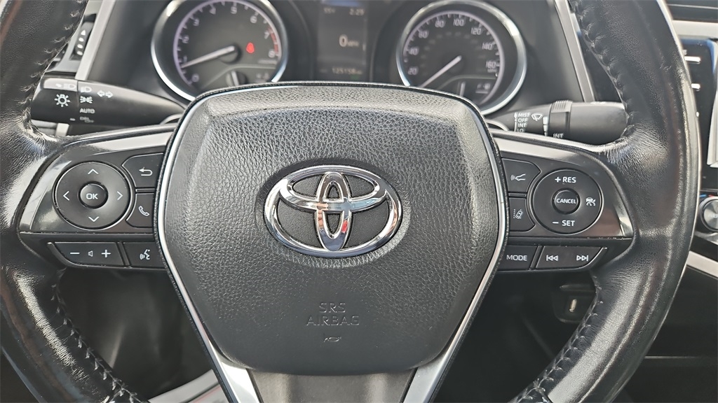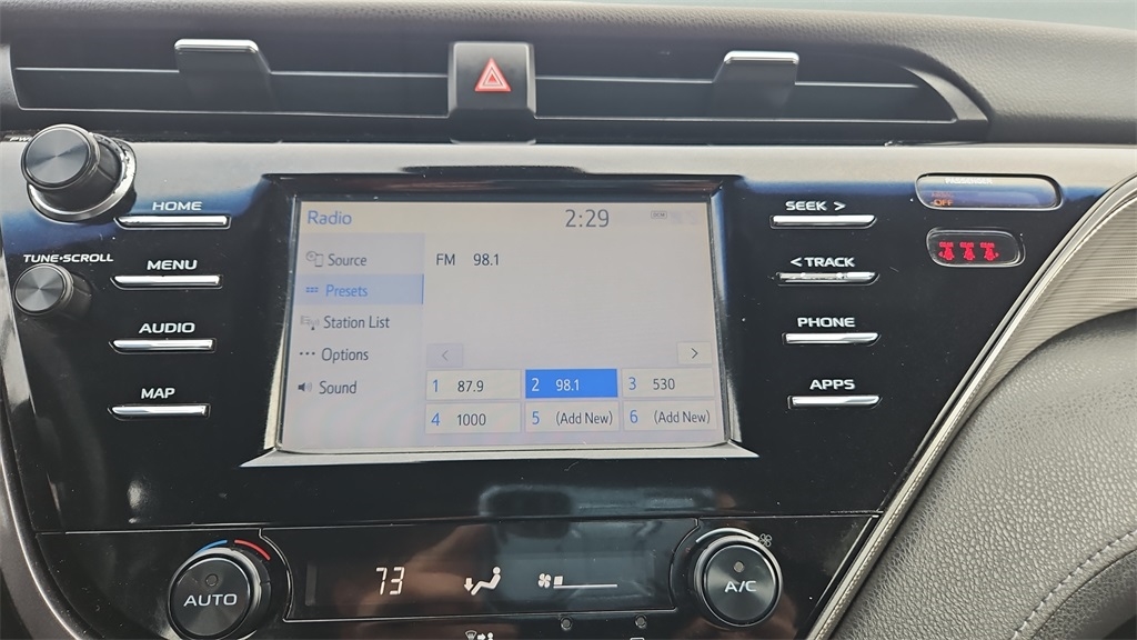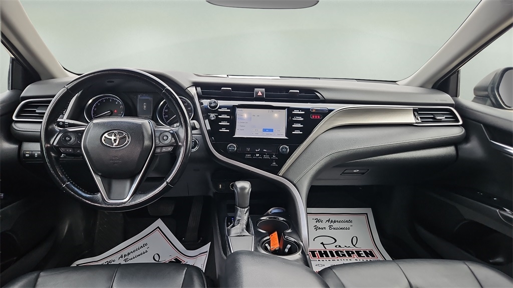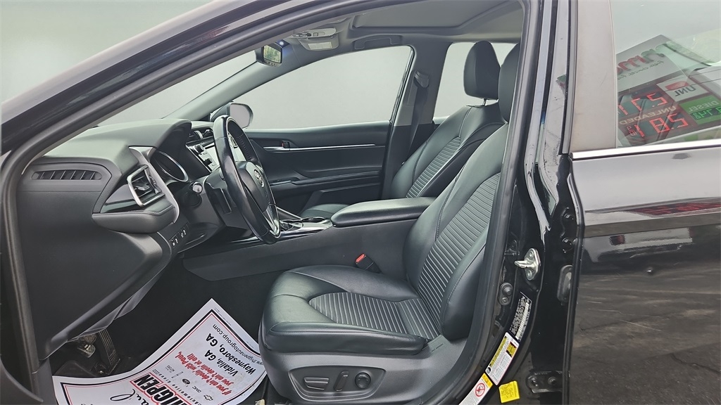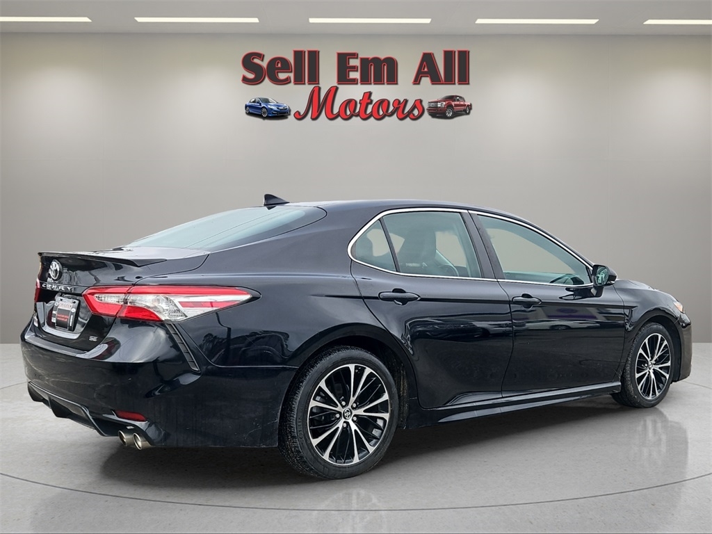 Sell Em All Motors in Vidlia is excited to offer this gorgeous 2019 Toyota Camry in Black This vehicle has passed our comprehensive inspection and comes with the following Black Cloth, ABS brakes, Active Cruise Control, Alloy wheels, Electronic Stability Control, Illuminated entry, Low tire pressure warning, Navigation System, Remote keyless entry, Traction control, 4-Wheel Disc Brakes, 6 Speakers, Air Conditioning, AM/FM radio, Apple CarPlay, Auto High-beam Headlights, Automatic temperature control, Brake assist, Bumpers: body-color, Delay-off headlights, Driver door bin, Driver vanity mirror, Dual front impact airbags, Dual front side impact airbags, Emergency communication system: Safety Connect, Exterior Parking Camera Rear, Fabric Seat Trim w/SofTex, Four wheel independent suspension, Front anti-roll bar, Front Bucket Seats, Front Bucket Sport Seats, Front Center Armrest, Front reading lights, Fully automatic headlights, Knee airbag, Leather Shift Knob, Occupant sensing airbag, Outside temperature display, Overhead airbag, Overhead console, Panic alarm, Passenger door bin, Passenger vanity mirror, Power door mirrors, Power driver seat, Power steering, Power windows, Radio data system, Radio: Entune 3.0 Audio w/App Suite, Rear anti-roll bar, Rear reading lights, Rear seat center armrest, Rear side impact airbag, Rear window defroster, Security system, Speed control, Speed-sensing steering, Split folding rear seat, Spoiler, Sport steering wheel, Steering wheel mounted audio controls, Tachometer, Telescoping steering wheel, Tilt steering wheel, Trip computer, Variably intermittent wipers, and Wheels: 8.0J x 18" Black Machined-Finish Alloy; Black Cloth, ABS brakes, Active Cruise Control, Alloy wheels, Electronic Stability Control, Illuminated entry, Low tire pressure warning, Navigation System, Remote keyless entry, Traction control.