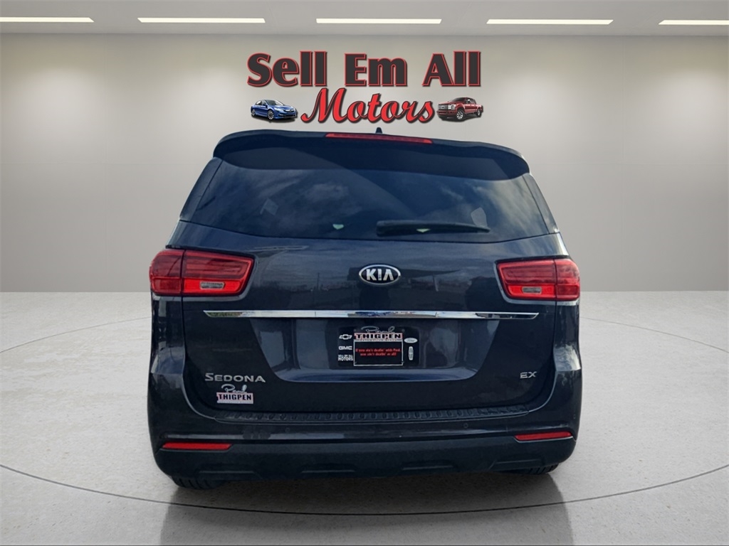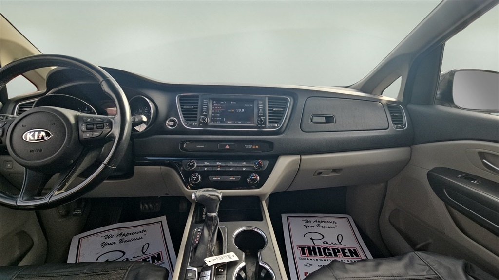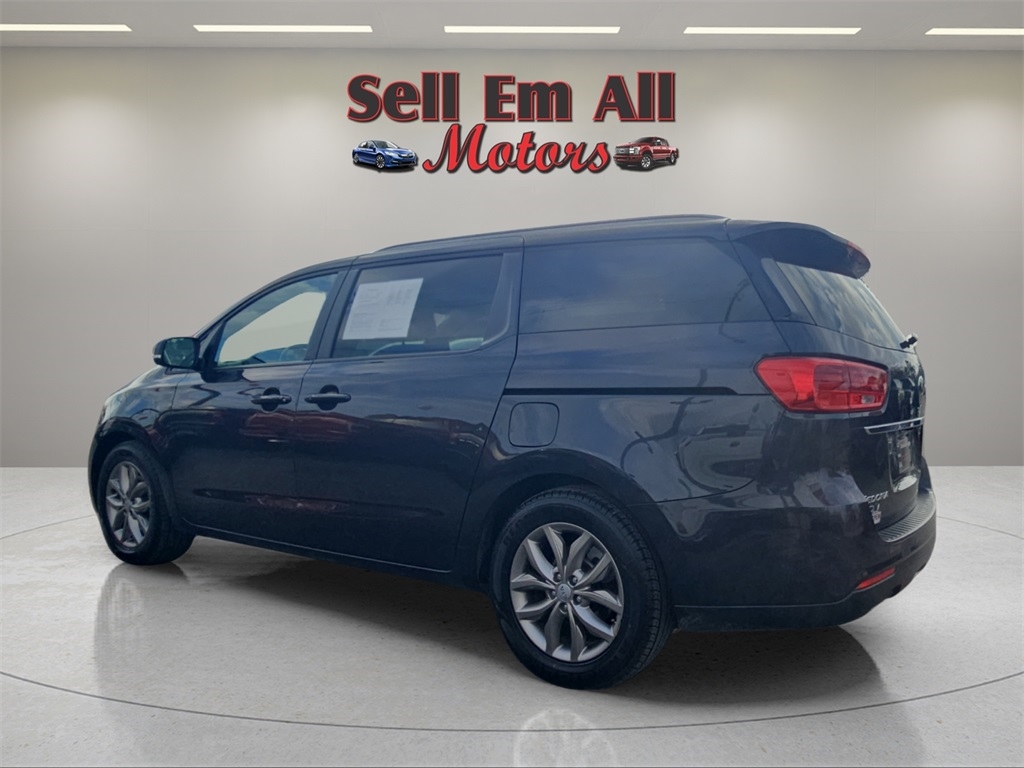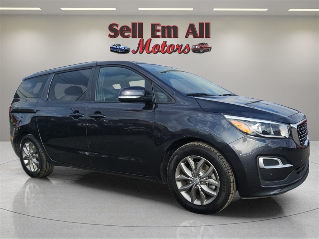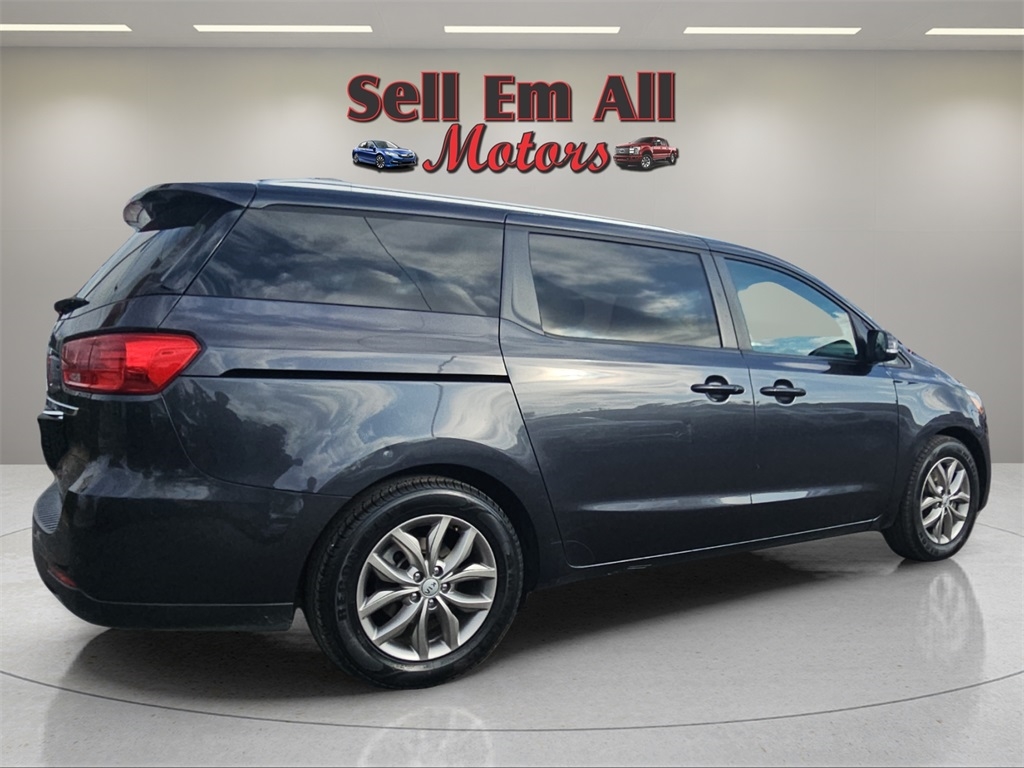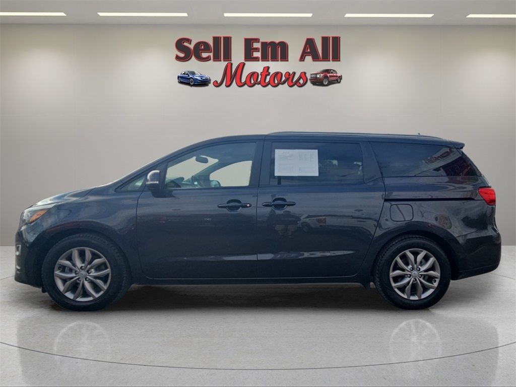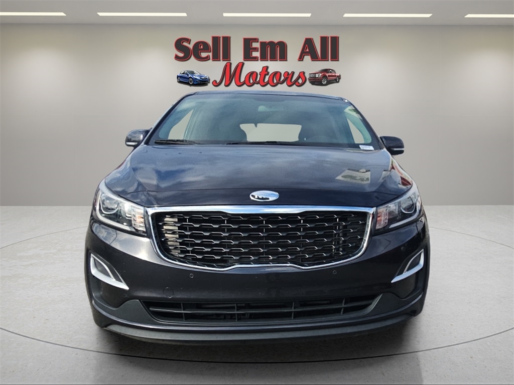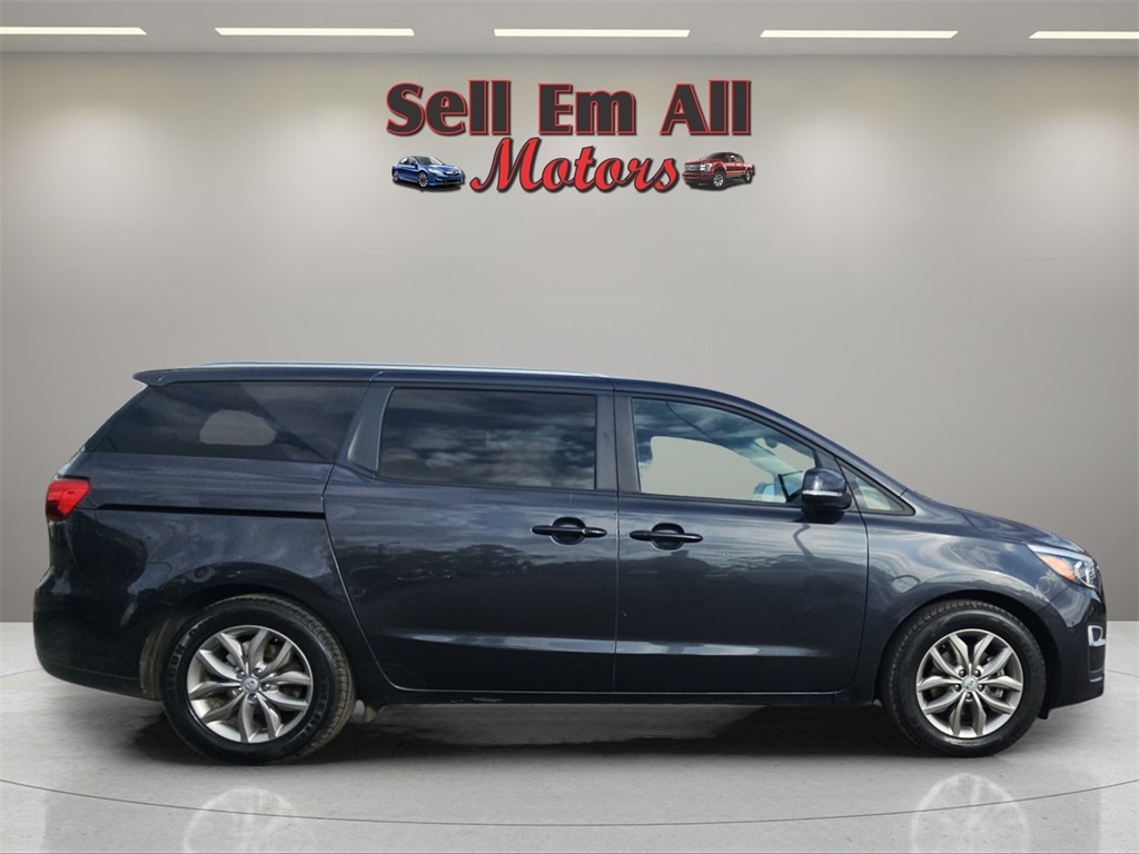 Sell Em All Motors in Vidlia is very proud to offer this charming 2019 Kia Sedona in Panthera Metal This vehicle has passed our comprehensive inspection and comes with the following 18" x 7.0J Alloy Wheels, 2-Way Power Driver Lumbar Support, 3.041 Axle Ratio, 3rd row seats: split-bench, 4-Way Adjustable Passenger's Seat, 4-Wheel Disc Brakes, 6 Speakers, 8-Way Power Driver Seat, ABS brakes, Air Conditioning, Alloy wheels, AM/FM radio: SiriusXM, Apple CarPlay & Android Auto, Auto-dimming Rear-View mirror, Automatic temperature control, Brake assist, Bumpers: body-color, Cargo Net, Carpeted Floormats, Compass, Delay-off headlights, Driver door bin, Driver vanity mirror, Dual front impact airbags, Dual front side impact airbags, Electronic Stability Control, Emergency communication system, Exterior Parking Camera Rear, Four wheel independent suspension, Front anti-roll bar, Front Bucket Seats, Front Center Armrest, Front dual zone A/C, Front reading lights, Fully automatic headlights, Garage door transmitter: HomeLink, Heated door mirrors, Heated Front Captain Seats, Heated front seats, Illuminated entry, Leather Shift Knob, Leather steering wheel, Leather-Trimmed Seats, Low tire pressure warning, Occupant sensing airbag, Outside temperature display, Overhead airbag, Overhead console, Panic alarm, Passenger door bin, Passenger vanity mirror, Power door mirrors, Power driver seat, Power steering, Power windows, Radio: AM/FM/MP3 Audio System, Rear air conditioning, Rear anti-roll bar, Rear reading lights, Rear window defroster, Rear window wiper, Reclining 3rd row seat, Remote keyless entry, Roof rack: rails only, Security system, Speed control, Speed-sensing steering, Split folding rear seat, Spoiler, Steering wheel mounted audio controls, Tachometer, Telescoping steering wheel, Tilt steering wheel, Traction control, Trip computer, Turn signal indicator mirrors, and Variably intermittent wipers;