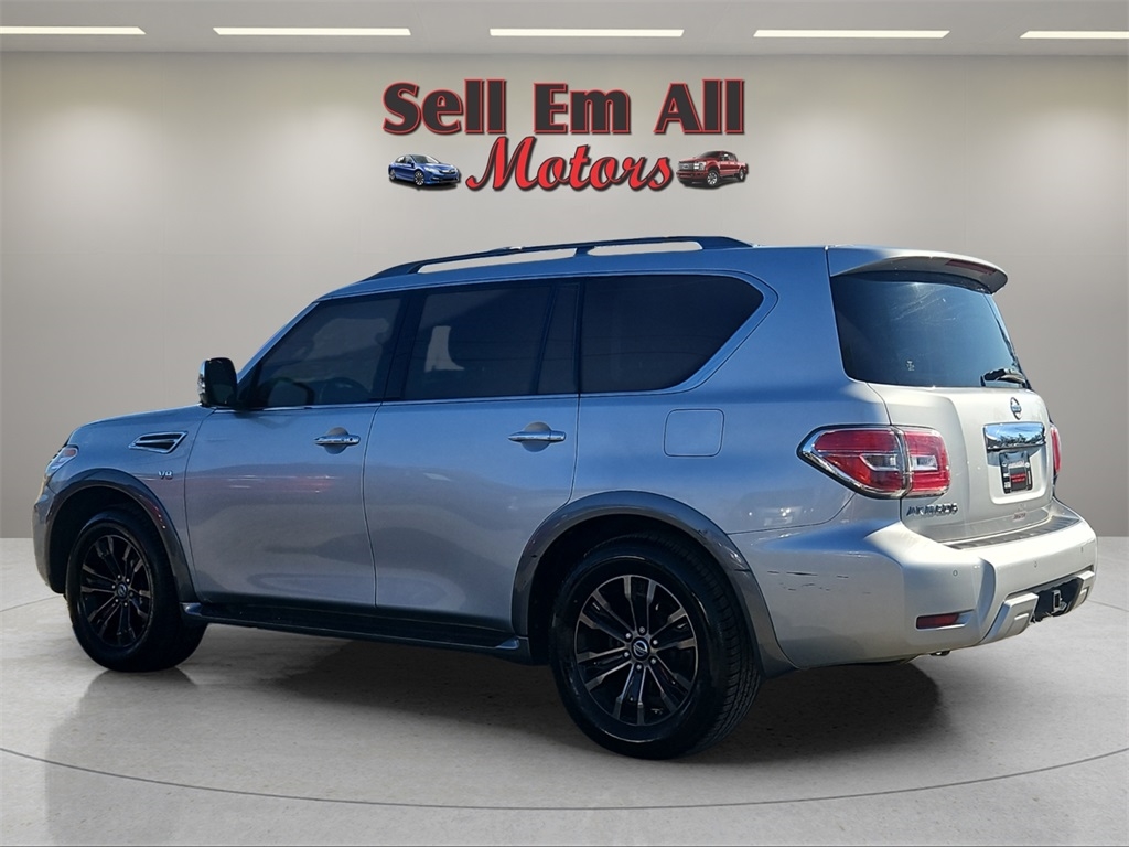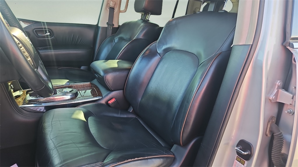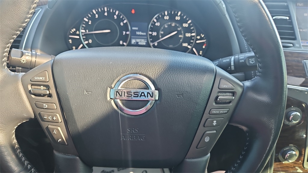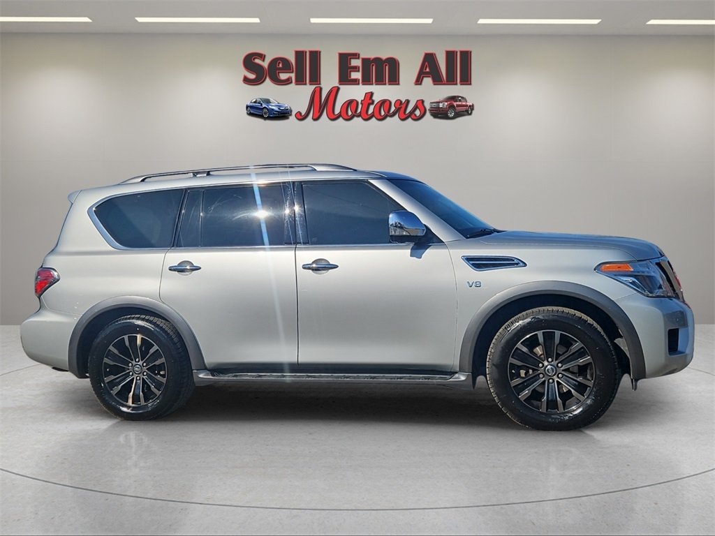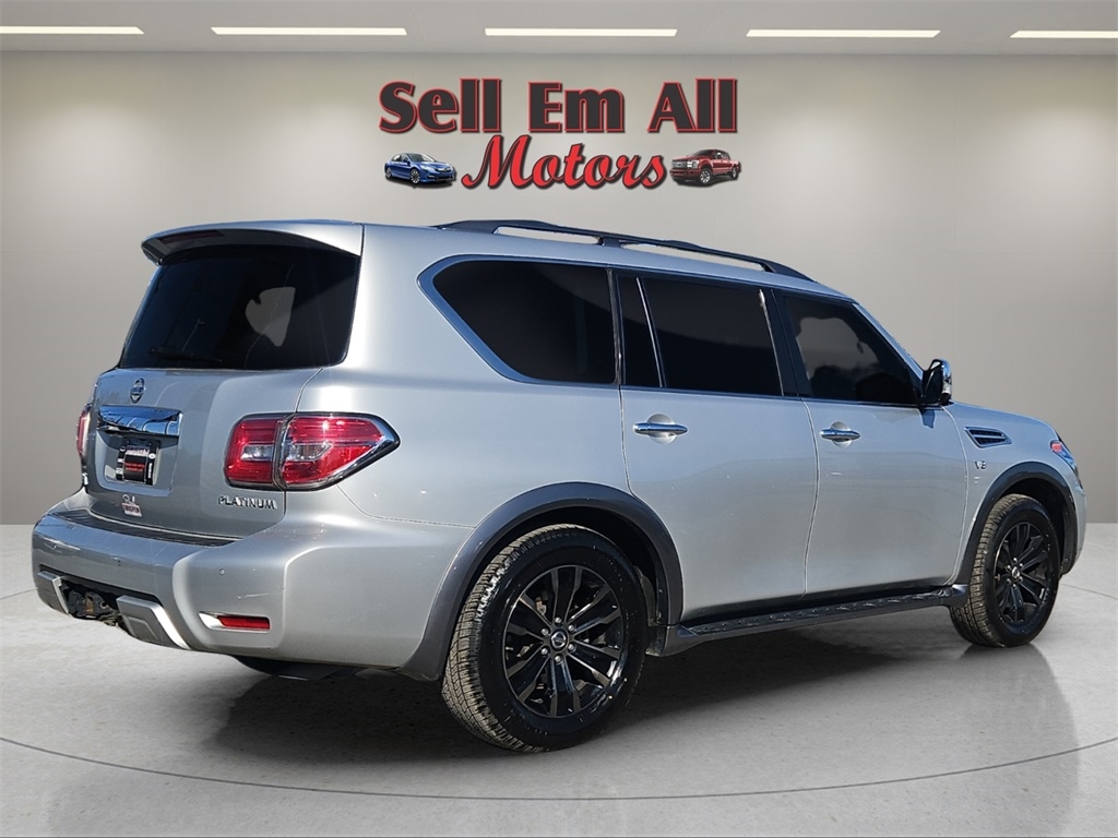 Sell Em All Motors in Vidlia is proud to offer this great 2017 Nissan Armada in Brilliant Silver This vehicle has passed our comprehensive inspection and comes with the following Captain Seat Package (Second Row Captain's Chairs and Second Row Center Console w/ Padded Armrest), Carpeted Floor Mats w/ Captain Seat Package, 13 Speakers, 2.937 Axle Ratio, 3rd row seats: split-bench, 4-Wheel Disc Brakes, A/V remote, ABS brakes, Air Conditioning, Alloy wheels, AM/FM radio: SiriusXM, Anti-whiplash front head restraints, Auto tilt-away steering wheel, Auto-dimming door mirrors, Auto-dimming Rear-View mirror, Auto-leveling suspension, Automatic temperature control, Brake assist, Bumpers: body-color, Cargo Area Protector, Cargo Net & First Aid Kit, CD player, Delay-off headlights, Driver door bin, Driver vanity mirror, Dual front impact airbags, Dual front side impact airbags, Electronic Stability Control, Four wheel independent suspension, Front anti-roll bar, Front Bucket Seats, Front Center Armrest, Front dual zone A/C, Front fog lights, Front reading lights, Fully automatic headlights, Garage door transmitter: HomeLink, Headphones, Heated & Cooled Front Bucket Seats, Heated door mirrors, Heated front seats, Heated rear seats, Heated steering wheel, Illuminated entry, Illuminated Kick Plates, Lane Departure Warning System, Leather Shift Knob, Leather-Appointed Seat Trim, Low tire pressure warning, Memory seat, Navigation System, Occupant sensing airbag, Outside temperature display, Overhead airbag, Overhead console, Panic alarm, Passenger door bin, Passenger vanity mirror, Power door mirrors, Power driver seat, Power Liftgate, Power moonroof, Power passenger seat, Power steering, Power windows, Radio data system, Radio: Bose AM/FM/SXM/CD/MP3 Audio System, Rain sensing wipers, Rear air conditioning, Rear anti-roll bar, Rear reading lights, Rear seat center armrest, Rear window defroster, Rear window wiper, Reclining 3rd row seat, Remote keyless entry, Roof rack: rails only, Roof Rail Cross Bars, Security system, Speed control, Speed-sensing steering, Speed-Sensitive Wipers, Split folding rear seat, Steering wheel mounted audio controls, Tachometer, Telescoping steering wheel, Tilt steering wheel, Traction control, Trip computer, Turn signal indicator mirrors, Variably intermittent wipers, Ventilated front seats, Voltmeter, and Wheels: 20" Machine-Faced Chrome w/Tinted CC;