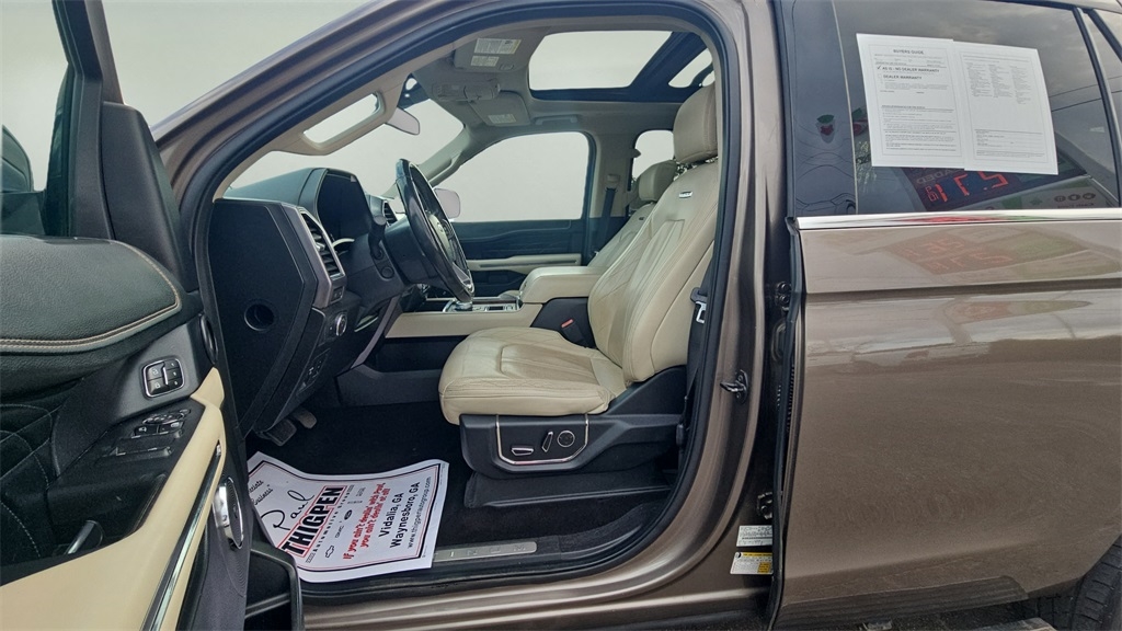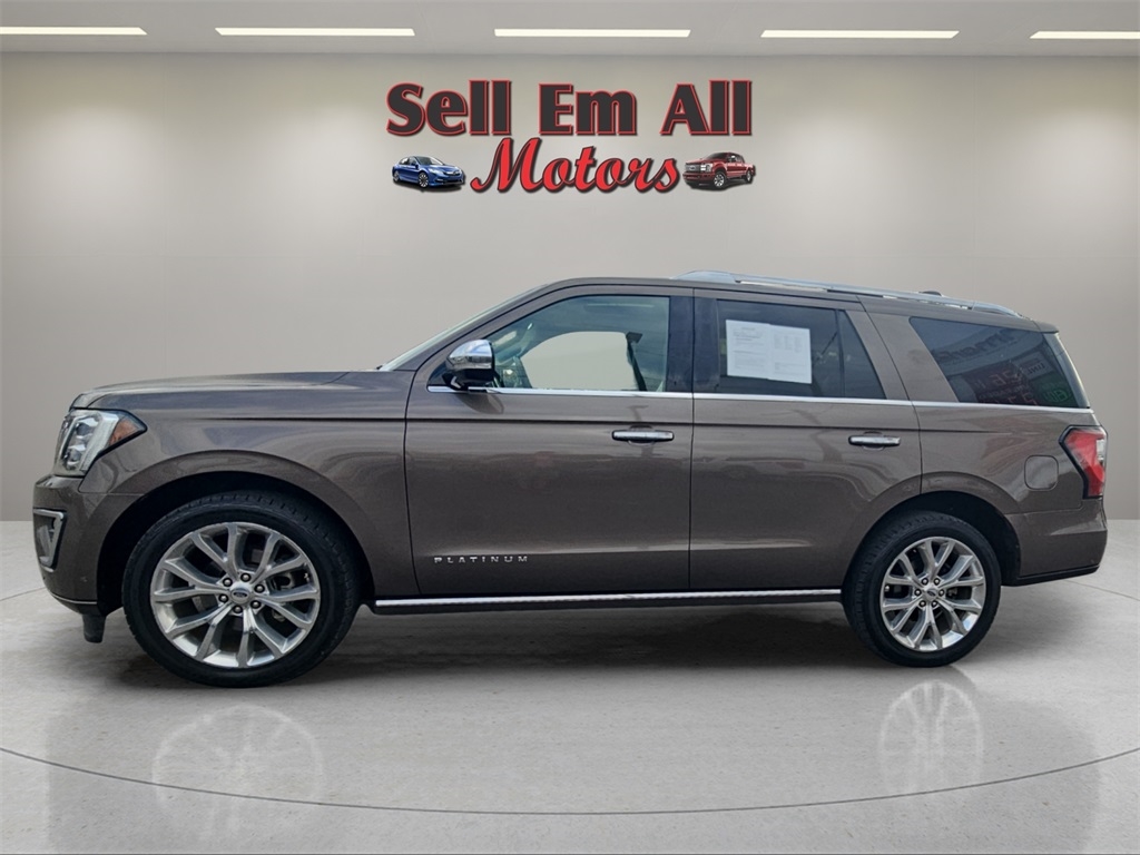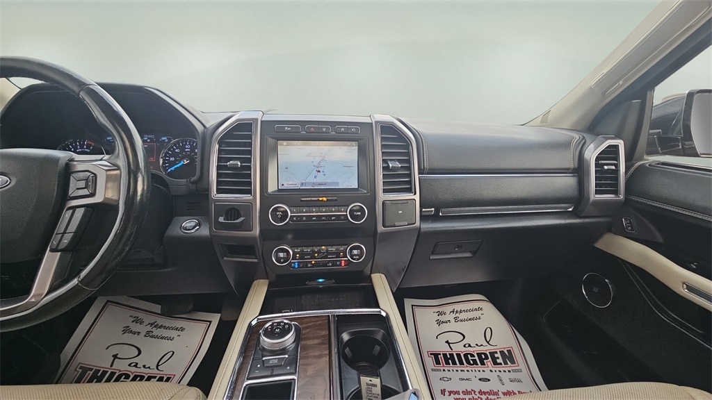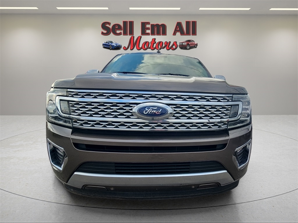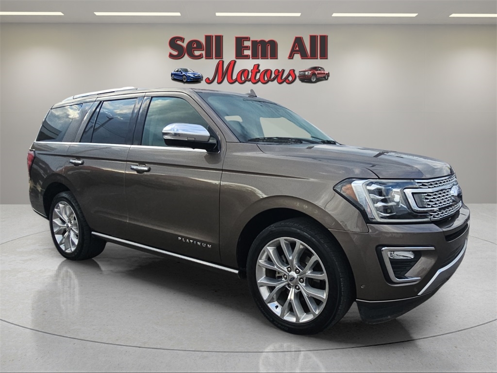 Sell Em All Motors in Vidlia is pumped up to offer this outstanding 2019 Ford Expedition in TAN This vehicle has passed our comprehensive inspection and comes with the following Equipment Group 600A, 12 Speakers, 1st & 2nd Row Floor Liners, 22" Polished Aluminum Wheels, 3.31 Axle Ratio, 3rd row seats: split-bench, 4-Wheel Disc Brakes, ABS brakes, Adaptive suspension, Adjustable pedals, Air Conditioning, Alloy wheels, AM/FM radio: SiriusXM, AppLink/Apple CarPlay and Android Auto, Auto High-beam Headlights, Auto-dimming door mirrors, Auto-dimming Rear-View mirror, Automatic temperature control, Brake assist, Bumpers: body-color, Compass, Delay-off headlights, Driver door bin, Driver vanity mirror, Dual front impact airbags, Dual front side impact airbags, Electronic Stability Control, Emergency communication system: SYNC 3 911 Assist, Exterior Parking Camera Rear, Four wheel independent suspension, Front anti-roll bar, Front Bucket Seats, Front Center Armrest, Front dual zone A/C, Front fog lights, Front reading lights, Fully automatic headlights, Garage door transmitter, Genuine wood console insert, Genuine wood dashboard insert, Genuine wood door panel insert, Heated & Cooled Perforated Leather Fr Bucket Seats, Heated door mirrors, Heated front seats, Heated rear seats, Heated steering wheel, Illuminated entry, Lane Departure Warning System, Leather steering wheel, Low tire pressure warning, Memory seat, Navigation System, Occupant sensing airbag, Outside temperature display, Overhead airbag, Overhead console, Panic alarm, Passenger door bin, Passenger vanity mirror, Pedal memory, Power door mirrors, Power driver seat, Power Liftgate, Power moonroof, Power passenger seat, Power steering, Power windows, Radio data system, Radio: B&O Sound System by Bang & Olufsen, Rain sensing wipers, Rear air conditioning, Rear anti-roll bar, Rear audio controls, Rear reading lights, Rear window defroster, Rear window wiper, Reclining 3rd row seat, Remote keyless entry, Reversible Cargo Mat, Roof rack, Security system, SiriusXM Satellite Radio, Speed control, Speed-sensing steering, Speed-Sensitive Wipers, Split folding rear seat, Steering wheel memory, Steering wheel mounted audio controls, SYNC 3 Communications & Entertainment System, Tachometer, Telescoping steering wheel, Tilt steering wheel, Traction control, Trip computer, Turn signal indicator mirrors, Variably intermittent wipers, Ventilated front seats, and Voltmeter;