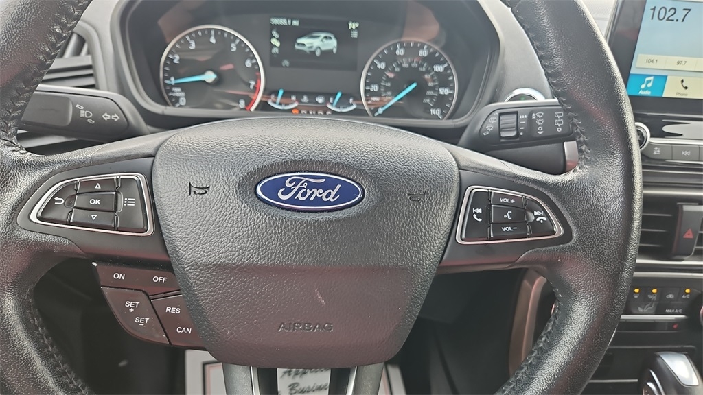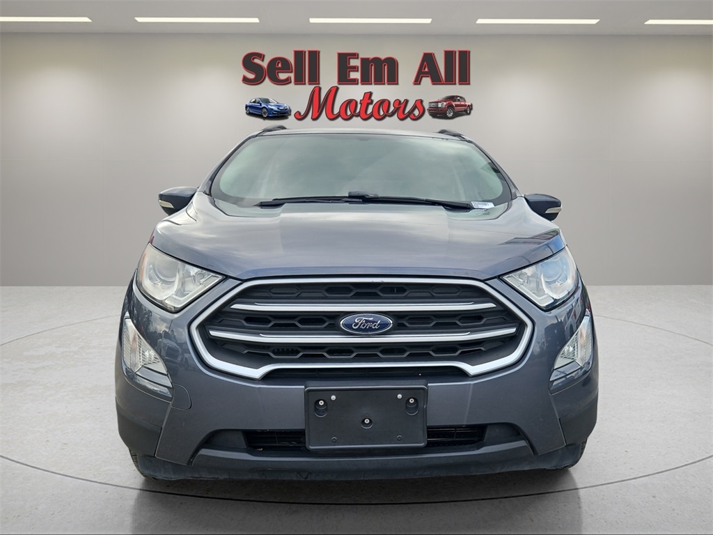 Sell Em All Motors in Vidlia is pleased to offer this fantastic-looking 2018 Ford EcoSport in Smoke Metallic This vehicle has passed our comprehensive inspection and comes with the following Equipment Group 200A, SE Convenience Package (110V/150W AC Power Outlet, 7 Speakers, Ambient Lighting, BLIS Blind Spot Information System, SYNC 3 Communications & Entertainment System w/47B, and SYNC Connect), 4-Wheel Disc Brakes, 6 Speakers, ABS brakes, Air Conditioning, Alloy wheels, AM/FM radio: SiriusXM, AppLink/Apple CarPlay and Android Auto, Automatic temperature control, Axle Ratio: 3.44, Brake assist, Bumpers: body-color, Compass, Delay-off headlights, Driver door bin, Driver vanity mirror, Dual front impact airbags, Dual front side impact airbags, Electronic Stability Control, Emergency communication system: SYNC 3 911 Assist, Exterior Parking Camera Rear, Front anti-roll bar, Front Bucket Seats, Front Center Armrest, Front fog lights, Front reading lights, Front wheel independent suspension, Fully automatic headlights, Heated front seats, Illuminated entry, Knee airbag, Leather Shift Knob, Leather steering wheel, Low tire pressure warning, Occupant sensing airbag, Outside temperature display, Overhead airbag, Overhead console, Panic alarm, Passenger door bin, Passenger vanity mirror, Power door mirrors, Power driver seat, Power moonroof, Power steering, Power windows, Radio data system, Radio: AM/FM Stereo w/MP3 Capable, Rear Parking Sensors, Rear seat center armrest, Rear side impact airbag, Rear window defroster, Rear window wiper, Remote keyless entry, Roof rack: rails only, SiriusXM Radio, Speed control, Speed-sensing steering, Split folding rear seat, Steering wheel mounted audio controls, SYNC 3 Communications & Entertainment System, Tachometer, Telescoping steering wheel, Tilt steering wheel, Tire Inflator & Sealant Kit, Traction control, Trip computer, Turn signal indicator mirrors, Unique Cloth Heated Bucket Seats, Variably intermittent wipers, and Wheels: 16" Shadow Silver-Painted Aluminum;