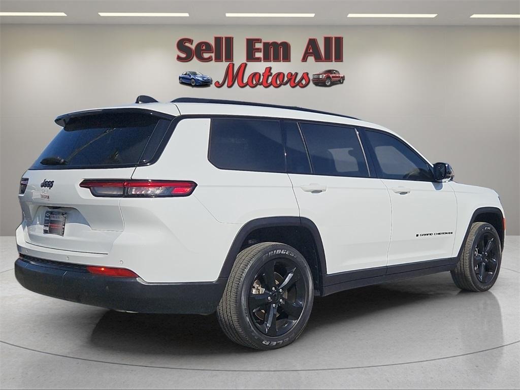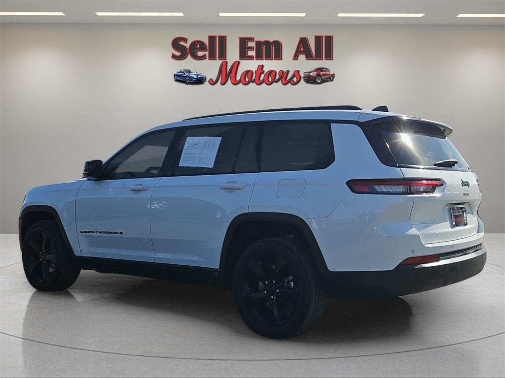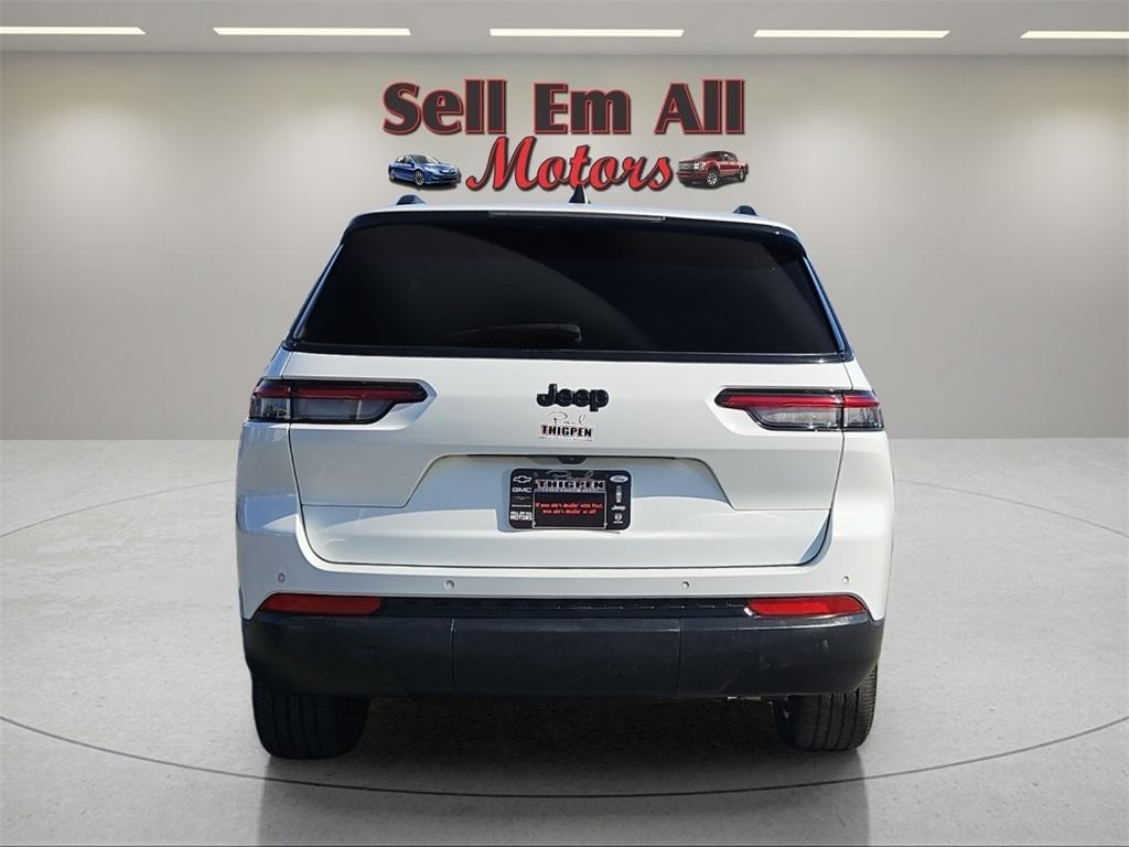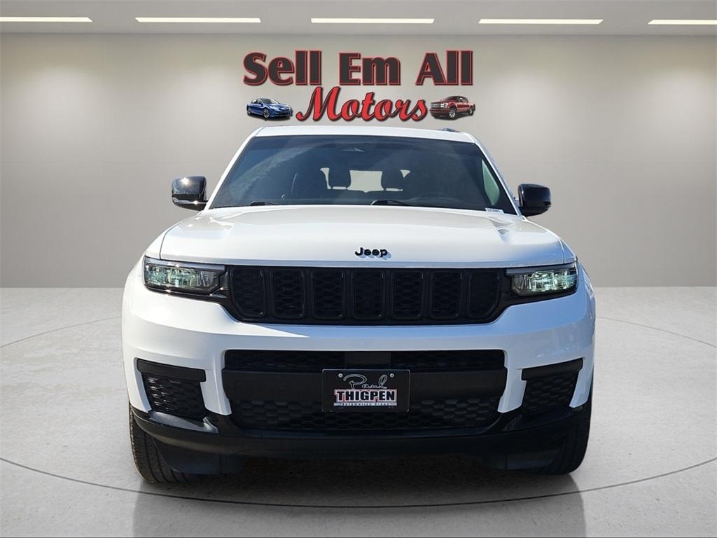 Sell Em All Motors in Vidlia is excited to offer this outstanding-looking 2023 Jeep Grand Cherokee L in Bright White Clearcoat This vehicle has passed our comprehensive inspection and comes with the following Altitude Appearance Package, Quick Order Package 23B Altitude (115V Auxiliary Power Outlet, 3rd Row Charge-Only USB Ports, Black Headliner, Capri Leatherette/Suede Seats, Delete Laredo Badge, Gloss Black Exterior Accents, Heated Front Seats, Heated Steering Wheel, Molded In Color Black/Gloss Black Roof Rails, Power Liftgate, Rain Sensitive Windshield Wipers, Remote Start System, Selectable Tire Fill Alert, Wheels: 18" x 8.0" Fully Painted Aluminum 1, and Wireless Charging Pad), Trailer Tow Group (B) (DISC) (180 Amp Alternator, Automatic Headlamp Leveling System, Heavy-Duty Engine Cooling, Rear Load Leveling Suspension, and Trailer Hitch Zoom), 3.45 Rear Axle Ratio, 3rd row seats: split-bench, 4-Wheel Disc Brakes, 6 Speakers, ABS brakes, Air Conditioning, Alloy wheels, Anti-whiplash front head restraints, Automatic temperature control, Brake assist, Bumpers: body-color, Cloth Seats, Compass, Delay-off headlights, Driver door bin, Driver vanity mirror, Dual front impact airbags, Dual front side impact airbags, Electronic Stability Control, Emergency communication system, Four wheel independent suspension, Front anti-roll bar, Front Bucket Seats, Front Center Armrest w/Storage, Front dual zone A/C, Front reading lights, Fully automatic headlights, Heated door mirrors, Illuminated entry, Knee airbag, Low tire pressure warning, Manual Fold Seatbacks, Normal Duty Suspension, Occupant sensing airbag, Outside temperature display, Overhead airbag, Overhead console, Panic alarm, ParkView Rear Back-Up Camera, Passenger door bin, Passenger vanity mirror, Power door mirrors, Power driver seat, Power steering, Power windows, Radio data system, Radio: Uconnect 5 w/8.4" Display, Rear air conditioning, Rear anti-roll bar, Rear reading lights, Rear window defroster, Rear window wiper, Reclining 3rd row seat, Remote keyless entry, Security system, Speed control, Speed-Sensitive Wipers, Split folding rear seat, Spoiler, Steering wheel mounted audio controls, Tachometer, Telescoping steering wheel, Tilt steering wheel, Traction control, Trip computer, Variably intermittent wipers, Voltmeter, Wheels: 18" x 8.0" Fully Painted Aluminum, and Wheels: 20" x 8.5" Gloss Black Painted Aluminum;