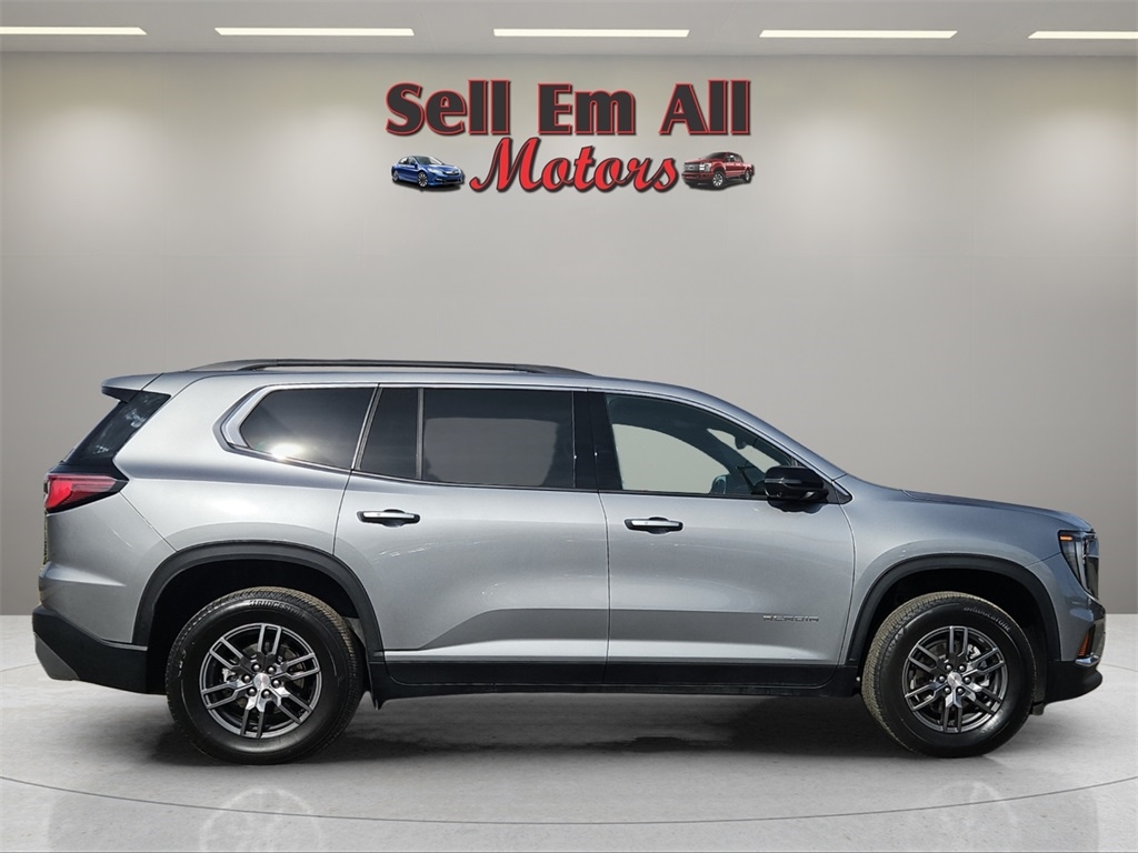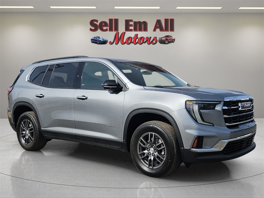 Sell Em All Motors in Vidlia is very proud to offer this wonderful-looking 2025 GMC Acadia in Sterling Metallic This vehicle has passed our comprehensive inspection and comes with the following Preferred Equipment Group 4SC, FWD, After Dark Cloth, 12 Speakers, 18" x 7.5" Aluminum Wheels, 2-Way Driver Power Lumbar Seat Adjuster, 3.49 Final Drive Axle Ratio, 3rd row seats: split-bench, 4-Way Manual Front Passenger Seat Adjuster, 4-Wheel Disc Brakes, 8-Passenger Seating (2-3-3 Seating Configuration), 8-Way Power Driver Seat Adjuster, ABS brakes, Air Conditioning, Alloy wheels, AM/FM radio: SiriusXM with 360L, Apple CarPlay/Android Auto, Auto High-beam Headlights, Auto-dimming Rear-View mirror, Automatic temperature control, Bodyside moldings, Bose Premium 12-Speaker System with Sub-Woofer, Brake assist, Bumpers: body-color, Cloth Seat Trim, Compass, Delay-off headlights, Driver door bin, Driver vanity mirror, Dual front impact airbags, Dual front side impact airbags, Electronic Stability Control, Emergency communication system: OnStar Services capable, Exterior Parking Camera Rear, Four wheel independent suspension, Front anti-roll bar, Front Bucket Seats, Front Center Armrest, Front dual zone A/C, Front fog lights, Front reading lights, Fully automatic headlights, Heated door mirrors, Heated Driver and Front Passenger Seats, Heated front seats, Heated steering wheel, Illuminated entry, Leather steering wheel, Low tire pressure warning, Navigation System, Occupant sensing airbag, Outside temperature display, Overhead airbag, Overhead console, Panic alarm, Passenger door bin, Passenger vanity mirror, Power door mirrors, Power driver seat, Power Liftgate, Power steering, Power windows, Radio data system, Radio: 15" Diagonal Premium GMC Infotainment System, Rear air conditioning, Rear anti-roll bar, Rear reading lights, Rear seat center armrest, Rear side impact airbag, Rear window defroster, Rear window wiper, Remote keyless entry, Security system, SiriusXM with 360L, Speed control, Speed-sensing steering, Split folding rear seat, Spoiler, Sport steering wheel, Steering wheel mounted audio controls, Tachometer, Telescoping steering wheel, Tilt steering wheel, Traction control, Trip computer, Turn signal indicator mirrors, Variably intermittent wipers, and Voltmeter; FWD, After Dark Cloth.