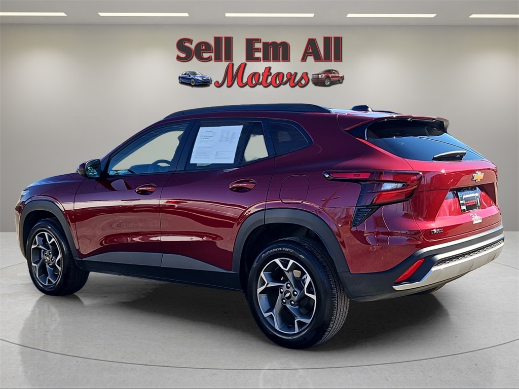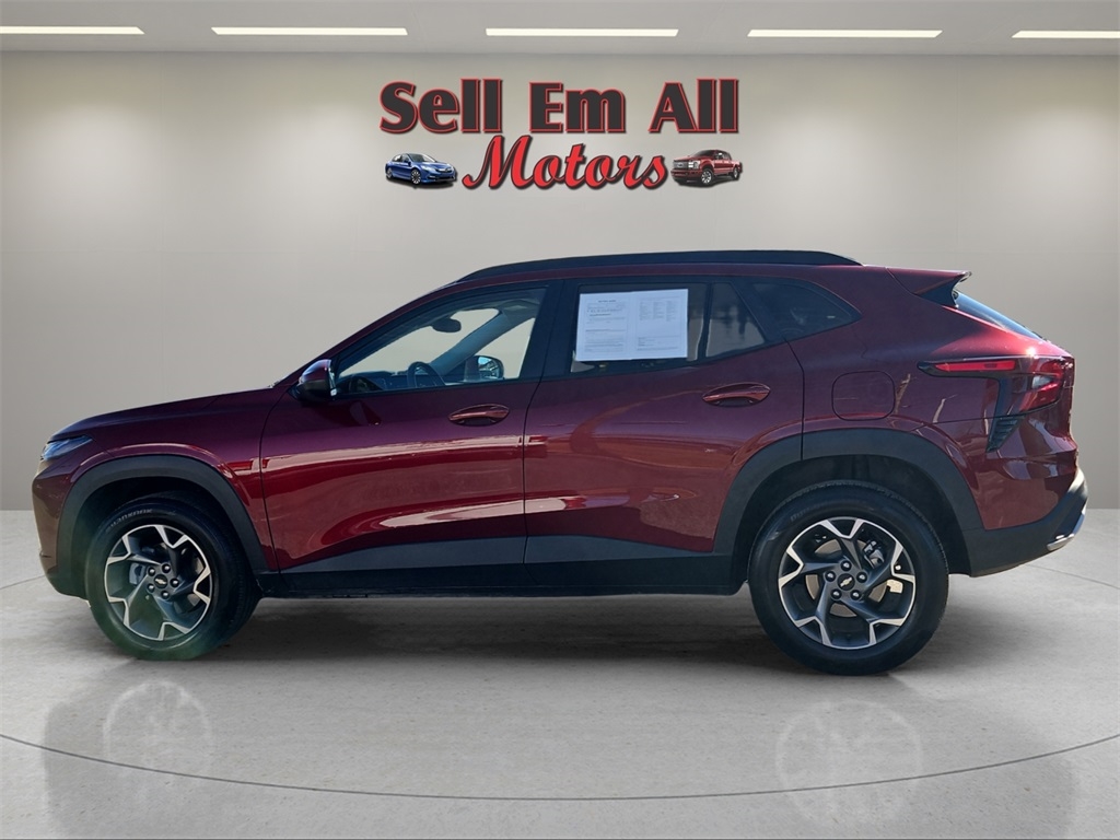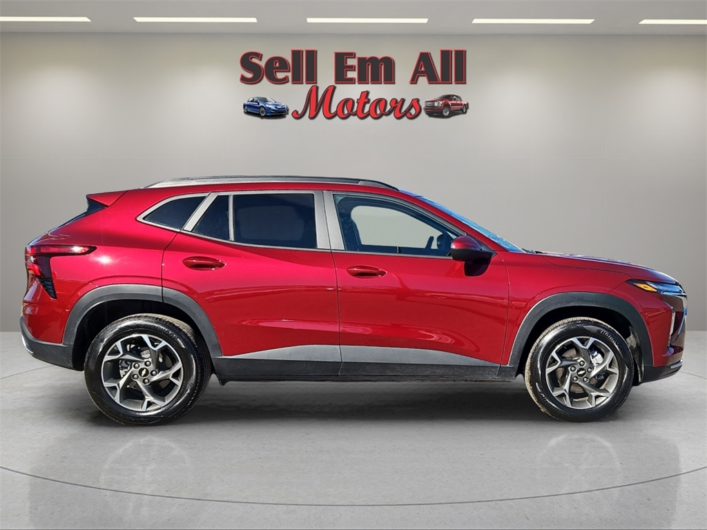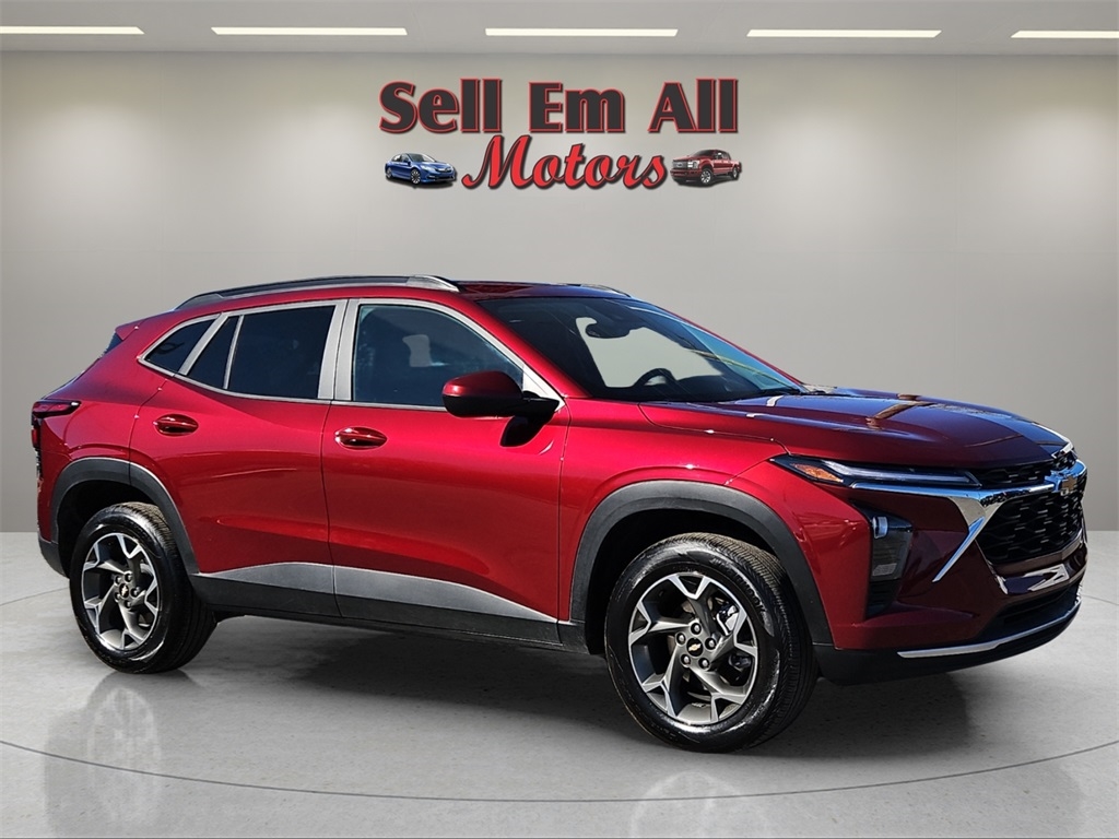 Sell Em All Motors in Vidlia is pleased to offer this wonderful-looking 2025 Chevrolet Trax in Crimson Metallic This vehicle has passed our comprehensive inspection and comes with the following License Plate Front Mounting Package, Preferred Equipment Group 1LT, 2-Way Adjustable Front Head Restraints, 3.50 Final Drive Axle Ratio, 4-Way Manual Front Passenger Seat Adjuster, 4-Wheel Disc Brakes, 6 Speakers, 6-Speaker Audio System Feature, 6-Way Manual Driver Seat Adjuster, ABS brakes, Air Conditioning, Alloy wheels, AM/FM radio: SiriusXM, Auto High-beam Headlights, Automatic temperature control, Brake assist, Bumpers: body-color, Cloth/Evotex Seat Trim, Compass, Delay-off headlights, Driver door bin, Driver vanity mirror, Dual front impact airbags, Dual front side impact airbags, Electronic Stability Control, Emergency communication system: OnStar One Essentials, Exterior Parking Camera Rear, Front anti-roll bar, Front Bucket Seats, Front Center Armrest, Front reading lights, Front wheel independent suspension, Fully automatic headlights, Illuminated entry, Low tire pressure warning, Occupant sensing airbag, Outside temperature display, Overhead airbag, Overhead console, Panic alarm, Passenger door bin, Passenger vanity mirror, Power door mirrors, Power steering, Power windows, Premium audio system: Chevrolet Infotainment 3, Radio data system, Radio: AM/FM Stereo Audio System, Rear window defroster, Rear window wiper, Remote keyless entry, Security system, SiriusXM Trial Subscription, Speed control, Split folding rear seat, Spoiler, Steering wheel mounted audio controls, Tachometer, Telescoping steering wheel, Tilt steering wheel, Traction control, Trip computer, Variably intermittent wipers, and Wheels: 17 Inch Gray-Painted Machined Aluminum Alloy;