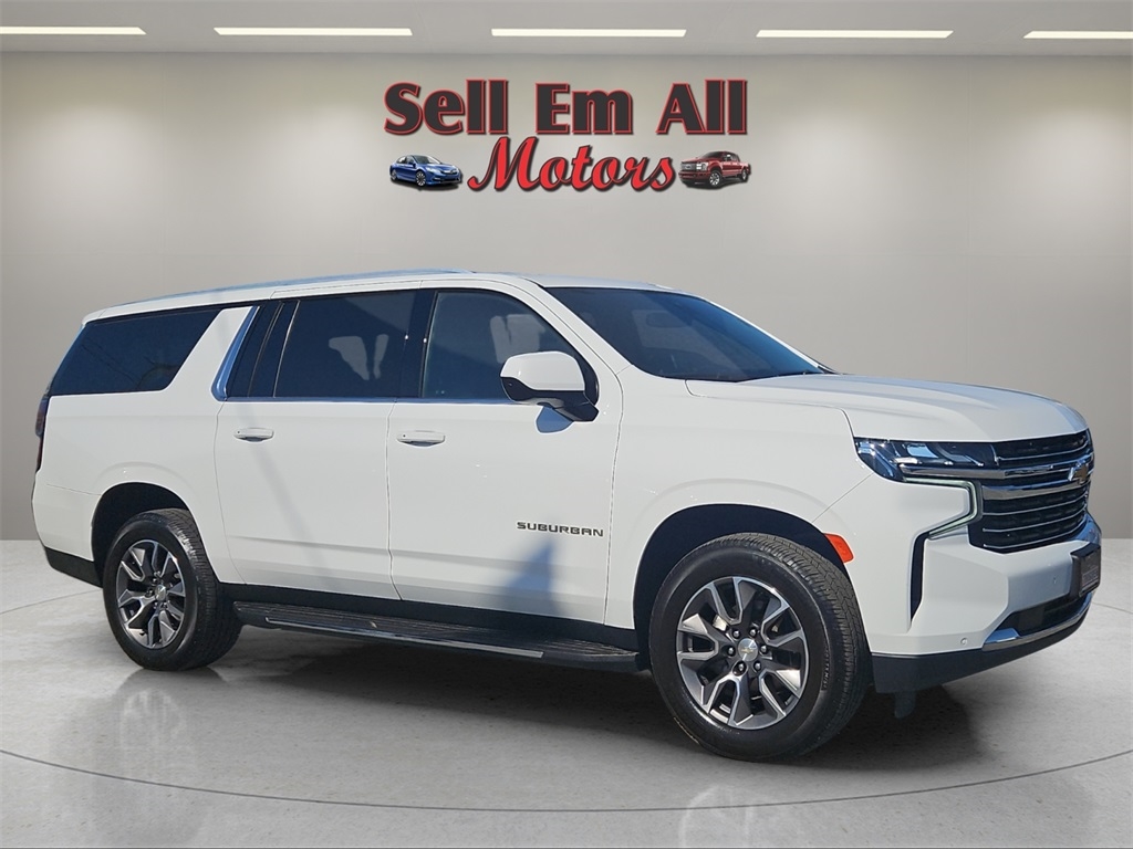 Sell Em All Motors in Vidlia is pleased to offer this charming-looking 2022 Chevrolet Suburban in Summit White This vehicle has passed our comprehensive inspection and comes with the following Preferred Equipment Group 1LT (10-Way Power Driver & Passenger Seat Adjusters, 1st & 2nd Row Color-Keyed Carpeted Floor Mats, Auto-Dimming Inside Rear-View Mirror, Automatic Stop/Start, Bose 9-Speaker Stereo Audio System Feature, Bright Front & Rear Door Sill Plates, Color-Keyed Carpeting Floor Covering, Driver & Front Outboard Passenger Airbags, Enhanced Driver Information Center, Floor Console w/Storage Area, Front & Rear Park Assist, Hands-Free Rear Power Programmable Liftgate, Heated Driver & Front Passenger Seats, Infotainment Display, Leather-Wrapped Steering Wheel, LED Daytime Running Lamps, Memory Settings For Driver, Remote Start, SiriusXM Radio w/360L, Start/Stop System Disable Button, Universal Home Remote, and Wireless Charging), 2nd Row Manual Bucket Seats, 3.23 Rear Axle Ratio, 3rd row seats: split-bench, 4-Wheel Disc Brakes, 9 Speakers, ABS brakes, Air Conditioning, Alloy wheels, AM/FM radio: SiriusXM with 360L, Apple CarPlay/Android Auto, Auto High-beam Headlights, Auto-dimming Rear-View mirror, Automatic temperature control, Brake assist, Bumpers: body-color, Compass, Delay-off headlights, Driver door bin, Driver vanity mirror, Dual front impact airbags, Dual front side impact airbags, Electronic Stability Control, Emergency communication system: OnStar and Chevrolet connected services capable, Four wheel independent suspension, Front anti-roll bar, Front Bucket Seats, Front Center Armrest, Front dual zone A/C, Front reading lights, Fully automatic headlights, Garage door transmitter, Heated door mirrors, Heated front seats, Illuminated entry, Leather steering wheel, Leather-Appointed Seating, Low tire pressure warning, Memory seat, Navigation System, Not Equipped w/Front & Rear Park Assist, Not Equipped w/Heated/Ventilated Front Seats, Not Equipped w/Steering Column Lock, Occupant sensing airbag, Outside temperature display, Overhead airbag, Overhead console, Panic alarm, Passenger door bin, Passenger vanity mirror, Polished Exhaust Tip, Power door mirrors, Power driver seat, Power Liftgate, Power passenger seat, Power steering, Power windows, Premium audio system: Chevrolet Infotainment 3 Premium, Premium Smooth Ride Suspension, Radio: Chevrolet Infotainment 3 Premium System, Rain sensing wipers, Rear air conditioning, Rear anti-roll bar, Rear reading lights, Rear seat center armrest, Rear window defroster, Rear window wiper, Remote keyless entry, Roof rack: rails only, Security system, Speed control, Speed-sensing steering, Split folding rear seat, Spoiler, Steering wheel mounted audio controls, Tachometer, Telescoping steering wheel, Tilt steering wheel, Traction control, Trip computer, Variably intermittent wipers, Voltmeter, Wheels: 18" x 8.5" Bright Silver Painted Aluminum, and Wheels: 20" x 9" Painted Aluminum;