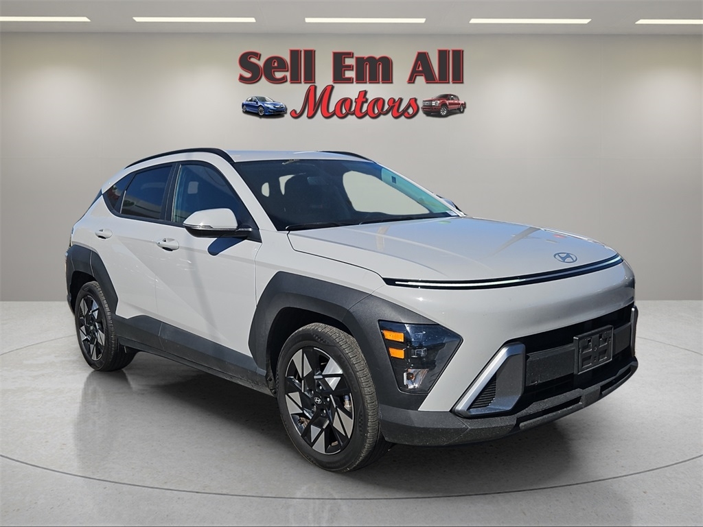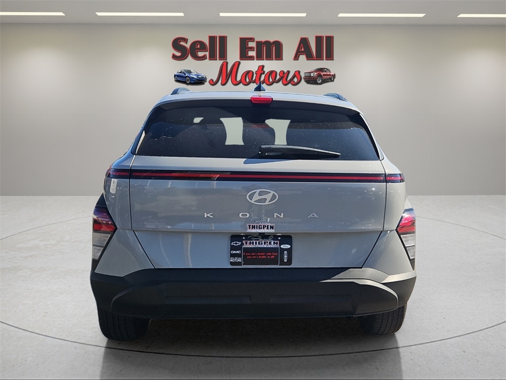 Sell Em All Motors in Vidlia is proud to offer this charming-looking 2025 Hyundai Kona in Cyber Gray Metallic This vehicle has passed our comprehensive inspection and comes with the following Option Group 01, 4-Wheel Disc Brakes, 6 Speakers, ABS brakes, Air Conditioning, Alloy wheels, AM/FM radio: SiriusXM, Apple CarPlay & Android Auto, Auto High-beam Headlights, Automatic temperature control, Brake assist, Bumpers: body-color, Cloth Seat Trim, Delay-off headlights, Driver door bin, Driver vanity mirror, Dual front impact airbags, Dual front side impact airbags, Electronic Stability Control, Emergency communication system: Bluelink+, Exterior Parking Camera Rear, Front anti-roll bar, Front Bucket Seats, Front Center Armrest, Front dual zone A/C, Front reading lights, Front wheel independent suspension, Fully automatic headlights, Heated door mirrors, Illuminated entry, Leather steering wheel, Low tire pressure warning, Occupant sensing airbag, Outside temperature display, Overhead airbag, Panic alarm, Passenger door bin, Passenger vanity mirror, Power door mirrors, Power driver seat, Power steering, Power windows, Radio: AM/FM/HD Radio/SiriusXM Audio System, Rear seat center armrest, Rear window defroster, Rear window wiper, Remote keyless entry, Security system, Speed control, Speed-sensing steering, Split folding rear seat, Spoiler, Steering wheel mounted audio controls, Tachometer, Telescoping steering wheel, Tilt steering wheel, Traction control, Trip computer, Turn signal indicator mirrors, Variably intermittent wipers, and Wheels: 18" x 7.0J Glossy Black Alloy;