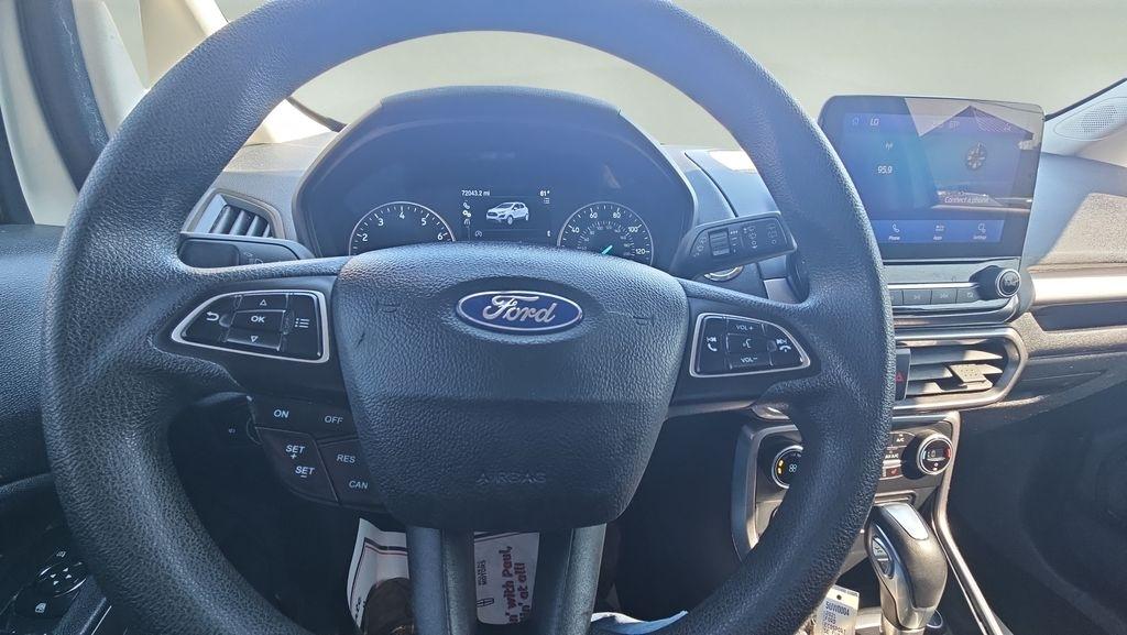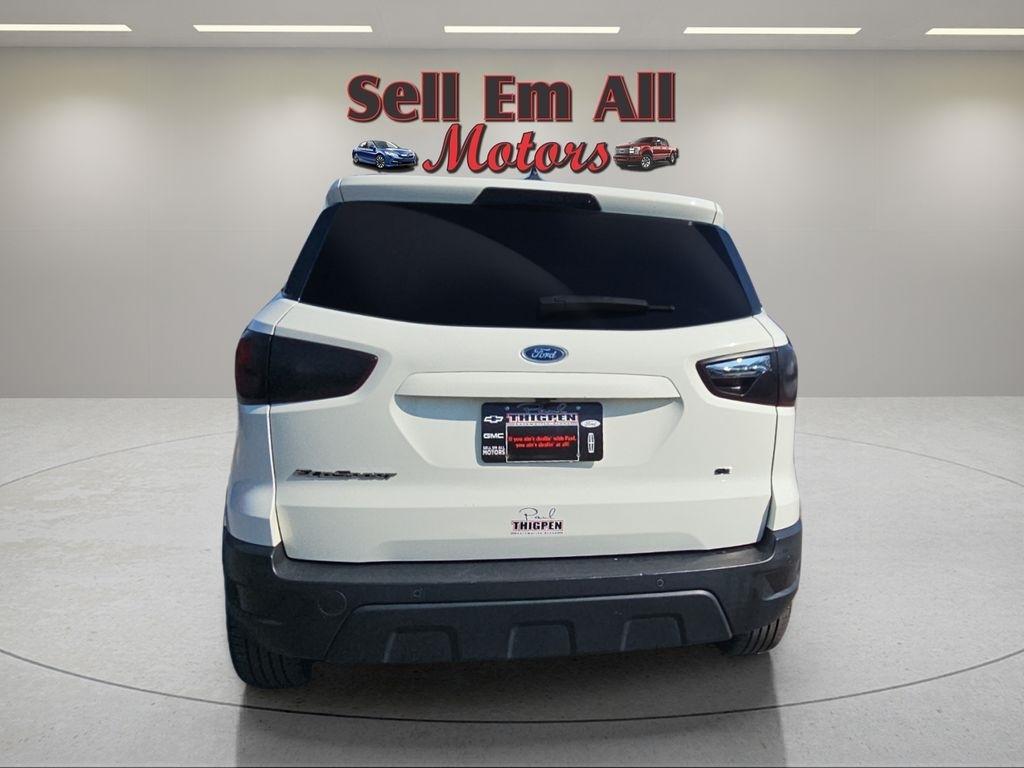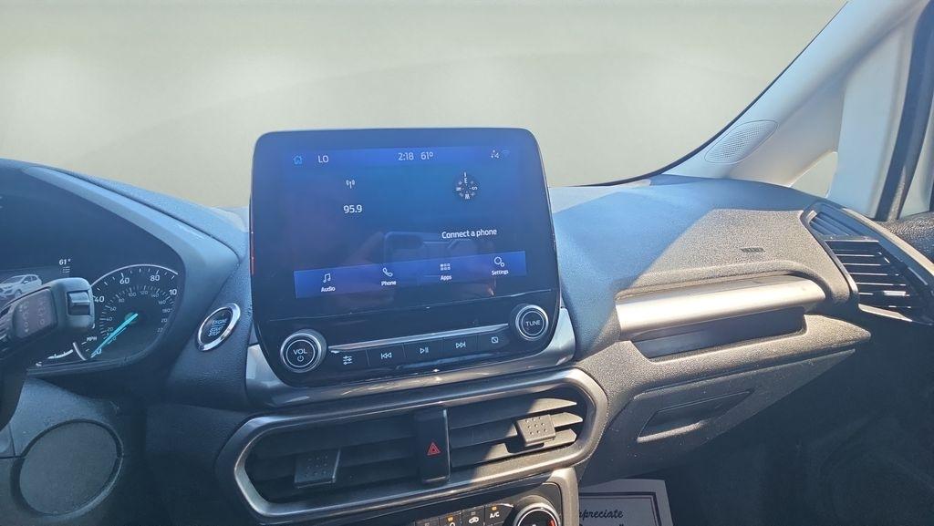 Sell Em All Motors in Vidlia is proud to offer this handsome 2021 Ford EcoSport in Diamond White This vehicle has passed our comprehensive inspection and comes with the following Equipment Group 200A, 3.44 Axle Ratio, 4-Wheel Disc Brakes, 6 Speakers, ABS brakes, Air Conditioning, Alloy wheels, AM/FM radio: SiriusXM, AppLink/Apple CarPlay and Android Auto, Automatic temperature control, Brake assist, Bumpers: body-color, Compass, Delay-off headlights, Driver door bin, Driver vanity mirror, Dual front impact airbags, Dual front side impact airbags, Electronic Stability Control, Emergency communication system: SYNC 3 911 Assist, Exterior Parking Camera Rear, Front anti-roll bar, Front Bucket Seats, Front Center Armrest, Front fog lights, Front reading lights, Front wheel independent suspension, Fully automatic headlights, Heated front seats, Illuminated entry, Knee airbag, Leather Shift Knob, Low tire pressure warning, Occupant sensing airbag, Outside temperature display, Overhead airbag, Overhead console, Panic alarm, Passenger door bin, Passenger vanity mirror, Power door mirrors, Power moonroof, Power steering, Power windows, Radio data system, Radio: AM/FM/MP3 Stereo, Rear Parking Sensors, Rear seat center armrest, Rear side impact airbag, Rear window defroster, Rear window wiper, Remote keyless entry, Roof rack: rails only, SiriusXM Radio, Speed control, Speed-sensing steering, Split folding rear seat, Steering wheel mounted audio controls, SYNC 3 Communications & Entertainment System, Tachometer, Telescoping steering wheel, Tilt steering wheel, Traction control, Trip computer, Turn signal indicator mirrors, Unique Cloth Heated Front Bucket Seats, Variably intermittent wipers, and Wheels: 16" Shadow Silver-Painted Aluminum;