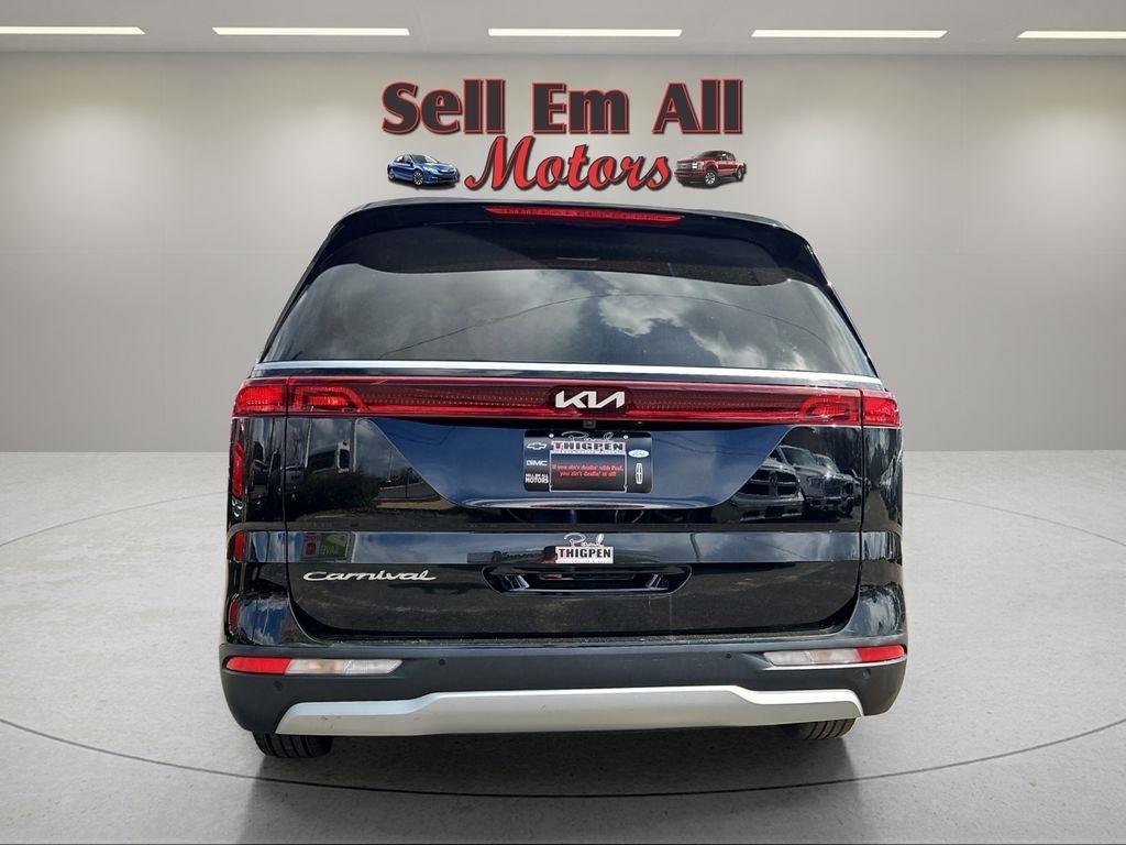 Sell Em All Motors in Vidlia is proud to offer this terrific-looking 2022 Kia Carnival in Aurora Black This vehicle has passed our comprehensive inspection and comes with the following 2-Way Power Driver's Lumbar Support, 3.51 Axle Ratio, 3rd row seats: split-bench, 4-Wheel Disc Brakes, 6 Speakers, 8 Way Power Driver's Seat, ABS brakes, Air Conditioning, Alloy wheels, AM/FM radio, Apple CarPlay & Android Auto, Artificial Leather Seat Trim, Auto High-beam Headlights, Brake assist, Bumpers: body-color, Carpeted Floor Mats (8-Passenger), Delay-off headlights, Driver door bin, Driver vanity mirror, Dual front impact airbags, Dual front side impact airbags, Electronic Stability Control, Four wheel independent suspension, Front anti-roll bar, Front Bucket Seats, Front Center Armrest, Front reading lights, Fully automatic headlights, Heated door mirrors, Heated Front Bucket Seats, Heated front seats, Illuminated entry, Knee airbag, Leather Shift Knob, Leather steering wheel, Low tire pressure warning, Occupant sensing airbag, Outside temperature display, Overhead airbag, Overhead console, Panic alarm, Passenger door bin, Passenger vanity mirror, Power door mirrors, Power driver seat, Power steering, Power windows, Radio: AM/FM Audio System, Rear air conditioning, Rear anti-roll bar, Rear reading lights, Rear window defroster, Rear window wiper, Reclining 3rd row seat, Remote keyless entry, Security system, Speed control, Speed-sensing steering, Split folding rear seat, Spoiler, Steering wheel mounted audio controls, Tachometer, Telescoping steering wheel, Tilt steering wheel, Traction control, Trip computer, Turn signal indicator mirrors, Variably intermittent wipers, and Wheels: 6.5J x 17" Clear Silver Painted Alloy;