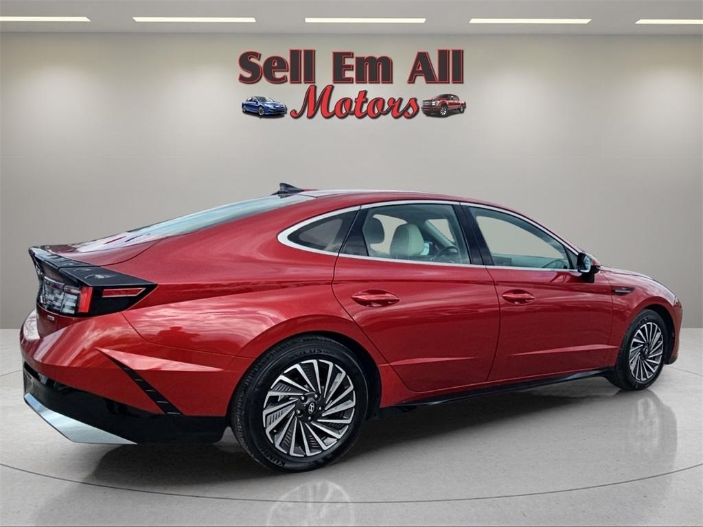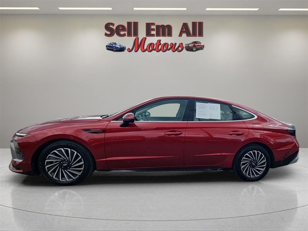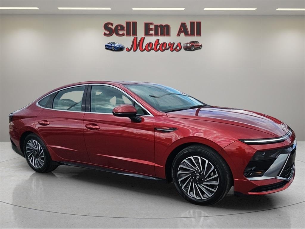 Sell Em All Motors in Vidlia is pleased to offer this great 2025 Hyundai Sonata Hybrid in Ultimate red This vehicle has passed our comprehensive inspection and comes with the following Option Group 01, I4, 17" x 7.0J Aluminum Alloy Wheels, 4-Wheel Disc Brakes, 6 Speakers, ABS brakes, Air Conditioning, Alloy wheels, AM/FM radio: SiriusXM, Apple CarPlay & Android Auto, Auto High-beam Headlights, Automatic temperature control, Brake assist, Bumpers: body-color, Cloth Seating Surfaces, Delay-off headlights, Driver door bin, Driver vanity mirror, Dual front impact airbags, Dual front side impact airbags, Electronic Stability Control, Emergency communication system: Bluelink+, Four wheel independent suspension, Front anti-roll bar, Front Bucket Seats, Front Center Armrest, Front dual zone A/C, Front reading lights, Fully automatic headlights, Heated door mirrors, Heated Front Bucket Seats, Heated front seats, Illuminated entry, Knee airbag, Lane Departure Warning System, Leather steering wheel, Low tire pressure warning, Occupant sensing airbag, Outside temperature display, Overhead airbag, Overhead console, Panic alarm, Passenger door bin, Passenger vanity mirror, Power door mirrors, Power driver seat, Power passenger seat, Power steering, Power windows, Radio data system, Radio: AM/FM/HD/SiriusXM, Rear anti-roll bar, Rear seat center armrest, Rear side impact airbag, Rear window defroster, Remote keyless entry, Security system, Speed control, Speed-sensing steering, Speed-Sensitive Wipers, Split folding rear seat, Spoiler, Steering wheel mounted audio controls, Tachometer, Telescoping steering wheel, Tilt steering wheel, Traction control, Trip computer, and Variably intermittent wipers; I4.