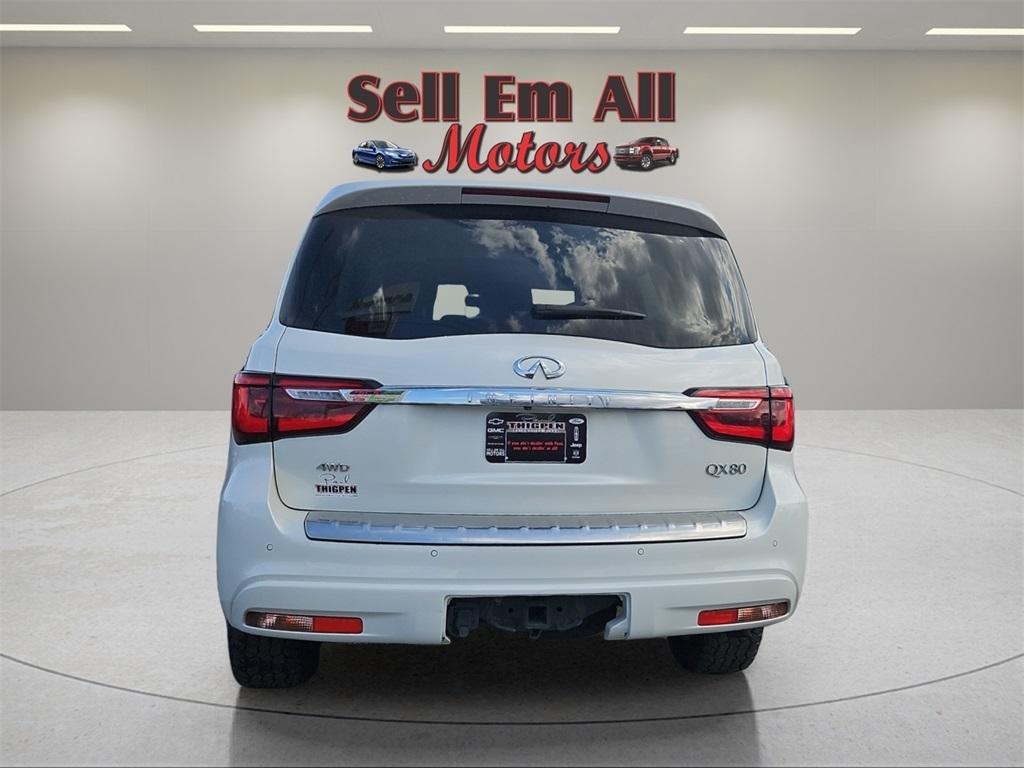 Sell Em All Motors in Vidlia is pumped up to offer this gorgeous-looking 2024 INFINITI QX80 in Moonstone White This vehicle has passed our comprehensive inspection and comes with the following Split Bench Seat Package, 13 Speakers, 2.937 Axle Ratio, 20" Aluminum Alloy Wheels, 3rd row seats: bench, 4-Wheel Disc Brakes, ABS brakes, Air Conditioning, Alloy wheels, AM/FM radio: SiriusXM, Anti-whiplash front head restraints, Apple CarPlay/Android Auto, Auto High-beam Headlights, Auto tilt-away steering wheel, Auto-dimming door mirrors, Auto-dimming Rear-View mirror, Auto-leveling suspension, Automatic temperature control, Brake assist, Bumpers: body-color, Compass, Delay-off headlights, Driver door bin, Driver vanity mirror, Dual front impact airbags, Dual front side impact airbags, Electronic Stability Control, Emergency communication system: INFINITI InTouch, Four wheel independent suspension, Front anti-roll bar, Front Bucket Seats, Front Center Armrest, Front dual zone A/C, Front fog lights, Front reading lights, Fully automatic headlights, Garage door transmitter: HomeLink, Heated door mirrors, Heated Front Bucket Seats, Heated front seats, Heated steering wheel, Illuminated entry, Leather Shift Knob, Leather steering wheel, Leather-Appointed Seats, Literature Kit, Low tire pressure warning, Memory seat, Navigation system: INFINITI InTouch Navigation, Occupant sensing airbag, Outside temperature display, Overhead airbag, Overhead console, Panic alarm, Passenger door bin, Passenger vanity mirror, Power door mirrors, Power driver seat, Power Liftgate, Power moonroof, Power passenger seat, Power steering, Power windows, Radio data system, Radio: Bose Premium Audio System w/13 Speakers, Rain sensing wipers, Rear air conditioning, Rear anti-roll bar, Rear reading lights, Rear seat center armrest, Rear window defroster, Rear window wiper, Reclining 3rd row seat, Remote keyless entry, Security system, Speed control, Speed-sensing steering, Split folding rear seat, Spoiler, Steering wheel memory, Steering wheel mounted audio controls, Tachometer, Telescoping steering wheel, Tilt steering wheel, Traction control, Trip computer, Turn signal indicator mirrors, Variably intermittent wipers, and Voltmeter;