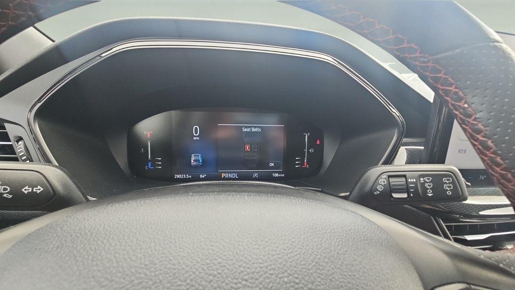Step inside the cabin and you'll be greeted by a well-appointed interior featuring Vinyl/Cloth Front Sport Contour Bucket Seats, a Sport Steering Wheel, and a host of advanced technology features. The SYNC 4 infotainment system with Enhanced Voice Recognition, wireless smartphone connectivity, and a built-in navigation system ensures you stay connected and informed on the go.