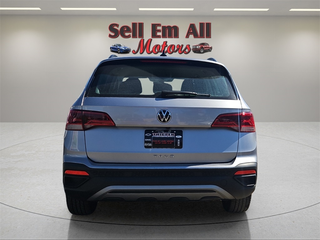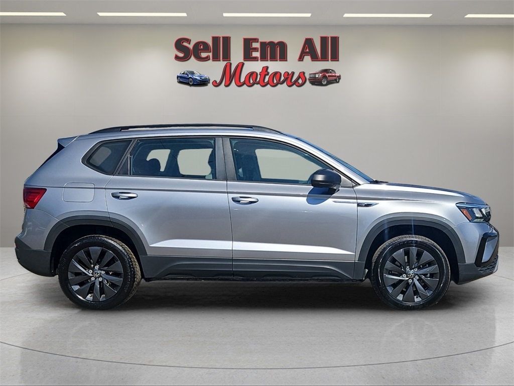 Sell Em All Motors in Vidlia is proud to offer this outstanding 2024 Volkswagen Taos in Aluminum This vehicle has passed our comprehensive inspection and comes with the following 3.23 Axle Ratio, 4-Wheel Disc Brakes, 6 Speakers, ABS brakes, Active Blind Spot Monitor, Air Conditioning, Alloy wheels, AM/FM radio, Auto High-beam Headlights, Brake assist, Bumpers: body-color, Cloth Seating Surfaces, Compass, Delay-off headlights, Driver door bin, Driver vanity mirror, Dual front impact airbags, Dual front side impact airbags, Electronic Stability Control, Emergency communication system: VW Car-Net Safe & Secure 5-year, Exterior Parking Camera Rear, Front anti-roll bar, Front Bucket Seats, Front Center Armrest, Front reading lights, Front Strut Rear Torsion Beam Suspension, Front wheel independent suspension, Fully automatic headlights, Heated steering wheel, Illuminated entry, Leather Shift Knob, Low tire pressure warning, Occupant sensing airbag, Outside temperature display, Overhead airbag, Overhead console, Panic alarm, Passenger door bin, Passenger vanity mirror, Power door mirrors, Power steering, Power windows, Radio data system, Radio: Composition Color AM/FM, Rain sensing wipers, Rear anti-roll bar, Rear seat center armrest, Rear window defroster, Rear window wiper, Remote keyless entry, Roof rack: rails only, Speed control, Speed-sensing steering, Split folding rear seat, Spoiler, Steering wheel mounted audio controls, Tachometer, Telescoping steering wheel, Tilt steering wheel, Traction control, Trip computer, Variably intermittent wipers, and Wheels: 17" Silver Painted Alloy;