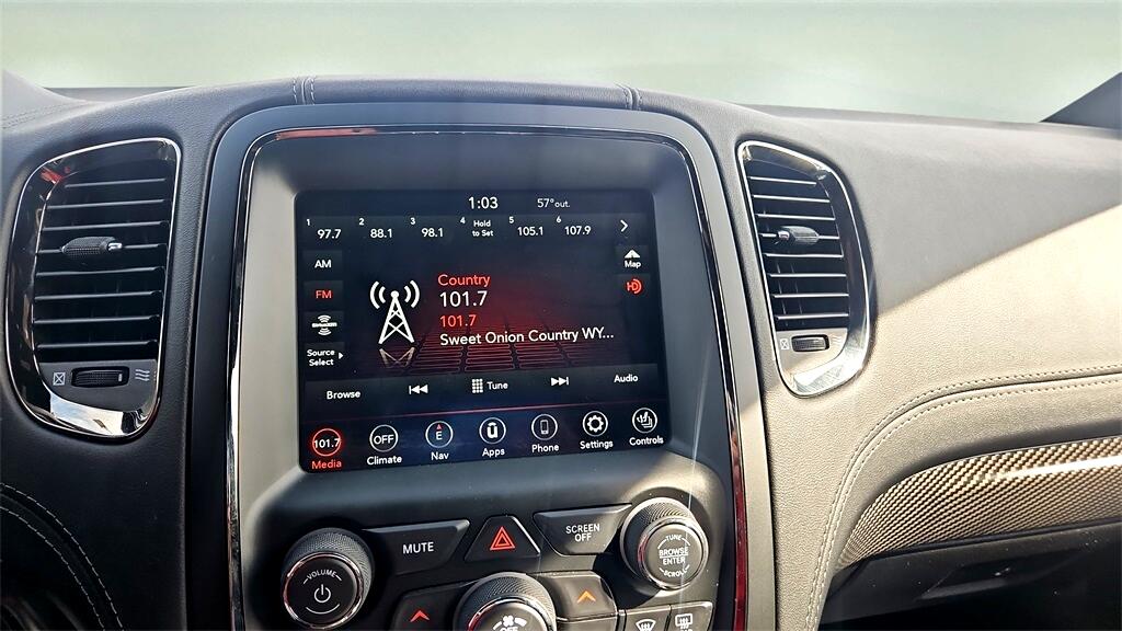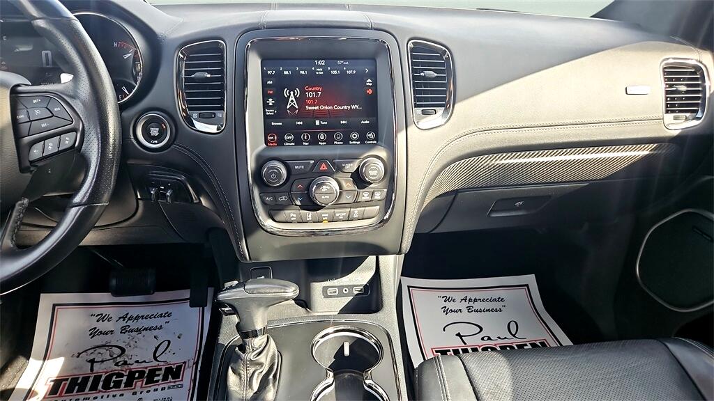 Sell Em All Motors in Vidlia is proud to offer this fantastic-looking 2020 Dodge Durango in Granite Metallic Clearcoat This vehicle has passed our comprehensive inspection and comes with the following Blacktop Package (Gloss Black Badges, Gloss Black Exterior Mirrors, and Wheels: 20" x 8.0" High Gloss Black Aluminum), Premium Interior Group (Premium Wrapped I/P Bezel and Suede Headliner), Quick Order Package 22S, Technology Group (Adaptive Cruise Control w/Stop, Advanced Brake Assist, Full Speed Forward Collision Warning Plus, and Lane Departure Warning Plus), Trailer Tow Group IV (7 & 4 Pin Wiring Harness, Class IV Receiver Hitch, Heavy-Duty Engine Cooling, Rear Load Leveling Suspension, and Trailer Brake Control), 19 harman/kardon Amplified Speakers w/Subwoofer, 2nd Row Fold/Tumble Captain Chairs, 2nd Row Mini Console w/Cupholders, 2nd Row Seat Mounted Inboard Armrests, 3.09 Rear Axle Ratio, 3rd Row Floor Mat & Mini Console, 3rd row seats: split-bench, 4-Wheel Disc Brakes, 6-Passenger Seating, 825 Watt Amplifier, 9 Speakers, ABS brakes, Air Conditioning, Alloy wheels, AM/FM radio: SiriusXM, Anti-whiplash front head restraints, Apple CarPlay/Android Auto, Audio memory, Auto High-beam Headlights, Auto-dimming door mirrors, Auto-dimming Rear-View mirror, Auto-leveling suspension, Automatic temperature control, Blind Spot & Cross Path Detection, Brake assist, Bumpers: body-color, Compass, Delay-off headlights, Driver door bin, Driver vanity mirror, Dual front impact airbags, Dual front side impact airbags, Electronic Stability Control, Emergency communication system: Roadside Assistance/9-1-1 Call, Four wheel independent suspension, Front anti-roll bar, Front Bucket Seats, Front Center Armrest w/Storage, Front dual zone A/C, Front fog lights, Front reading lights, Fully automatic headlights, Garage door transmitter, Heated door mirrors, Heated front seats, Heated rear seats, Heated steering wheel, High-Intensity Discharge Headlights, Illuminated entry, Knee airbag, Leather steering wheel, Leather Suede Bucket Seats, Low tire pressure warning, Memory seat, Navigation System, Occupant sensing airbag, Outside temperature display, Overhead airbag, Overhead console, Panic alarm, ParkView Rear Back-Up Camera, Passenger door bin, Passenger vanity mirror, Power door mirrors, Power driver seat, Power Liftgate, Power passenger seat, Power steering, Power Sunroof, Power windows, Radio data system, Radio: Uconnect 4C Nav w/8.4" Display, Rain sensing wipers, Real Carbon Fiber Interior Accents, Rear air conditioning, Rear anti-roll bar, Rear reading lights, Rear seat center armrest, Rear window defroster, Rear window wiper, Remote keyless entry, Security system, Speed control, Speed-Sensitive Wipers, Split folding rear seat, Spoiler, Steering wheel mounted audio controls, Tachometer, Telescoping steering wheel, Tilt steering wheel, Traction control, Trip computer, Turn signal indicator mirrors, Variably intermittent wipers, and Wheels: 20" x 8.0" Satin Carbon - Design 1;